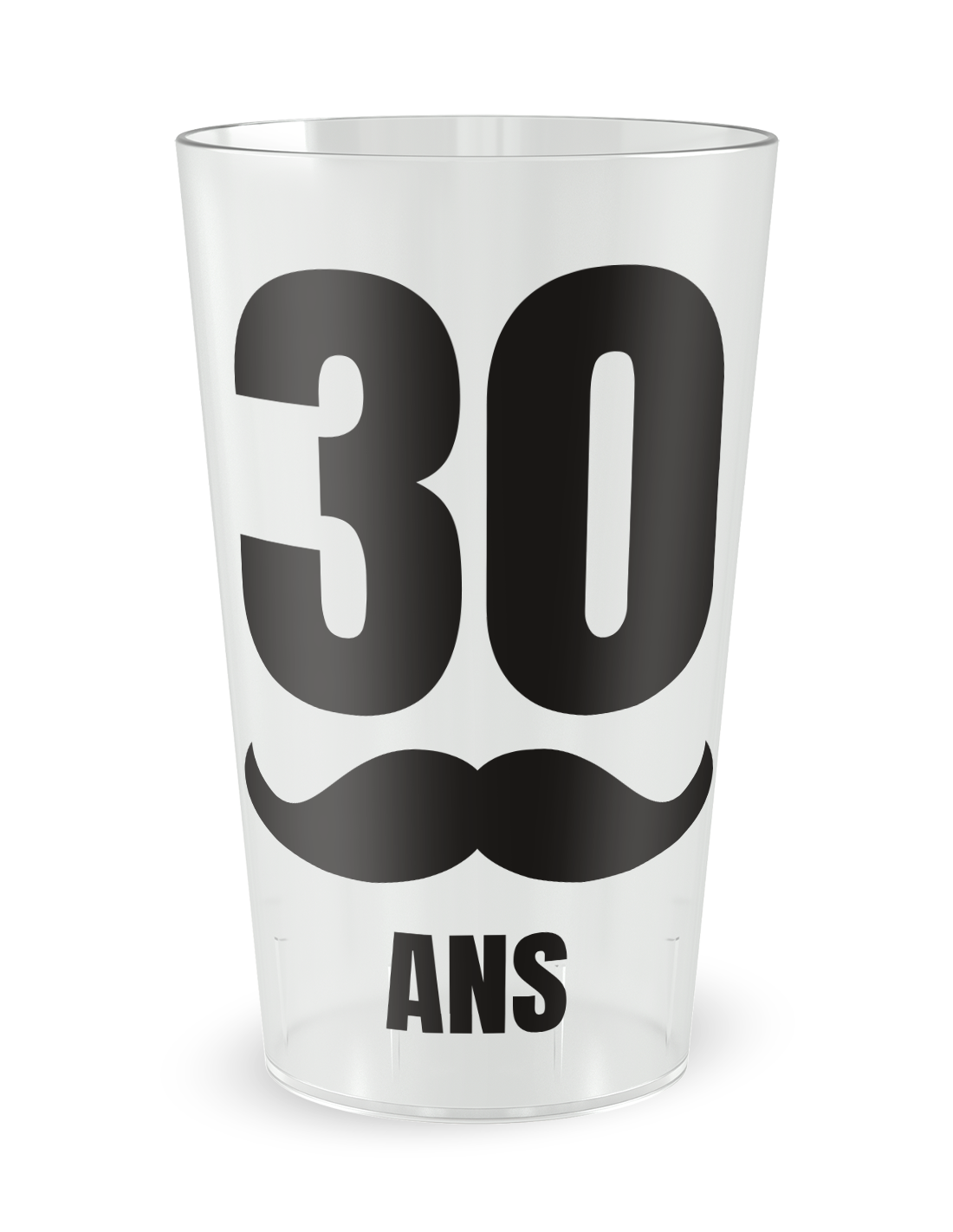Pour offrir une option de plus grande contenance tout en conservant le même esprit festif et le design iconique de la moustache, découvrez notre Gobelet personnalisé anniversaire adulte moustache 30 cl.