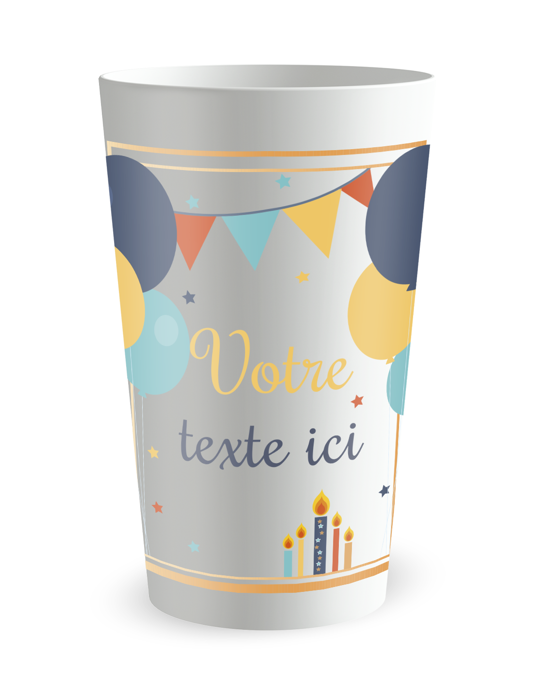 Fêtez votre anniversaire avec ce gobelet décoré de ballons, bougies et fanions colorés. Il s’adapte à une soirée intime comme à une grande fête. Les enfants comme les adultes l’utilisent avec le même réflexe.