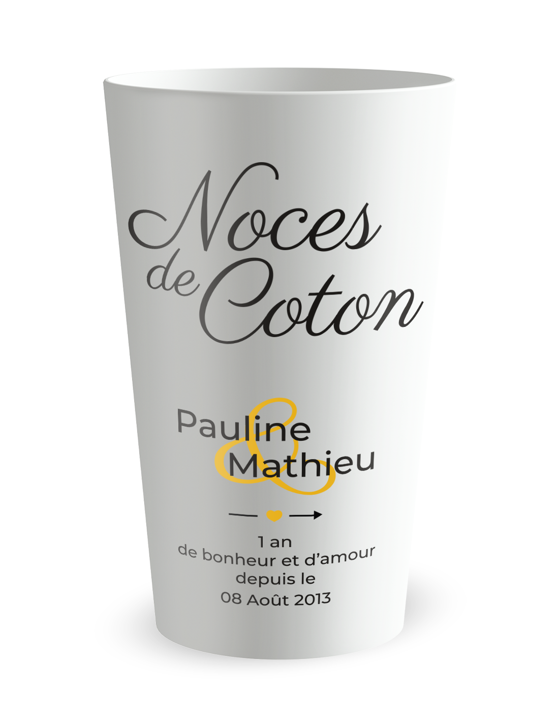 Gobelet personnalisé Mariage 1 An - Noces de Coton - 25 CL