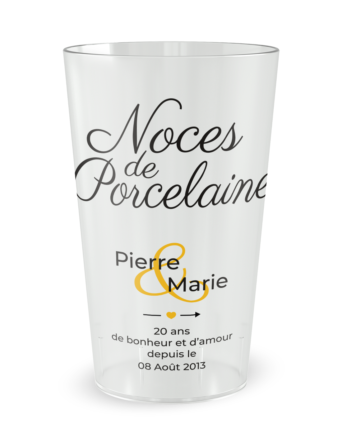 Gobelet personnalisé Mariage 20 Ans - Noces de Porcelaine - 25 CL