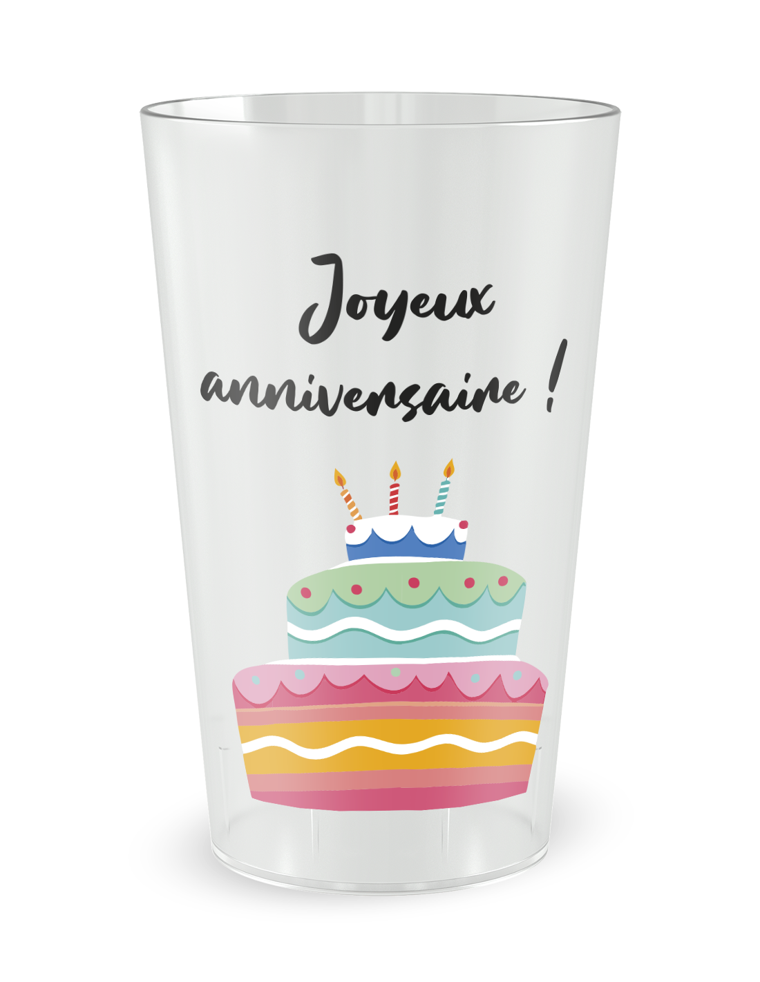 Gobelet transparent de face - Anniversaire Gateau - Ecocup