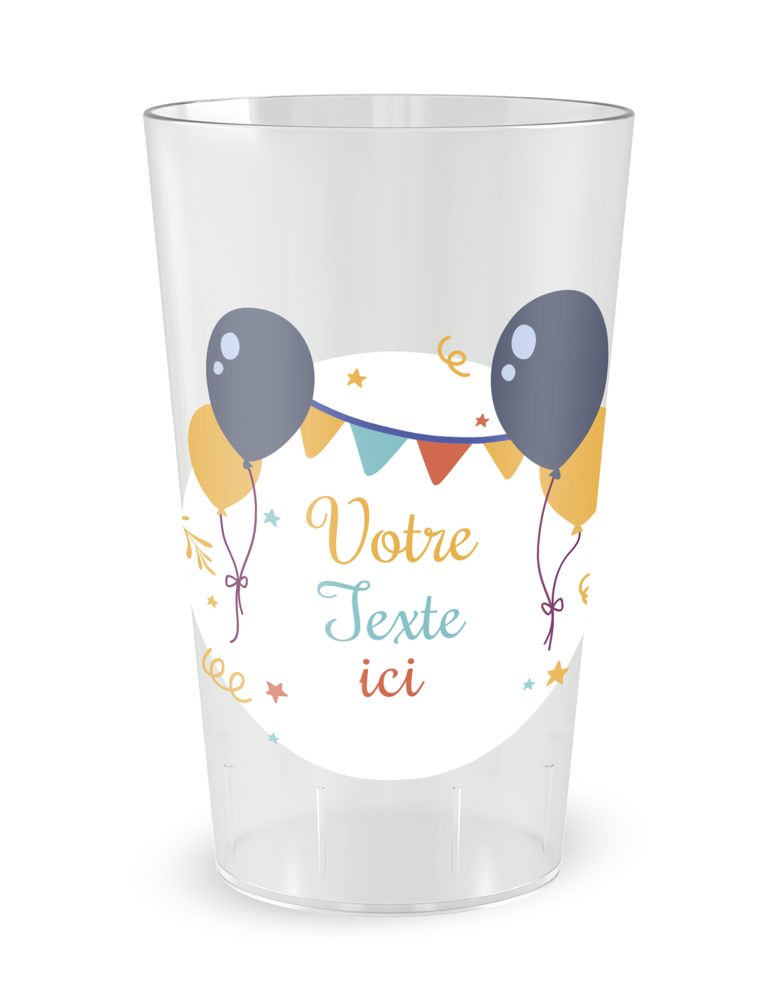Gobelet transparent de face - Anniversaire avec Ballons Festifs - Ecocup