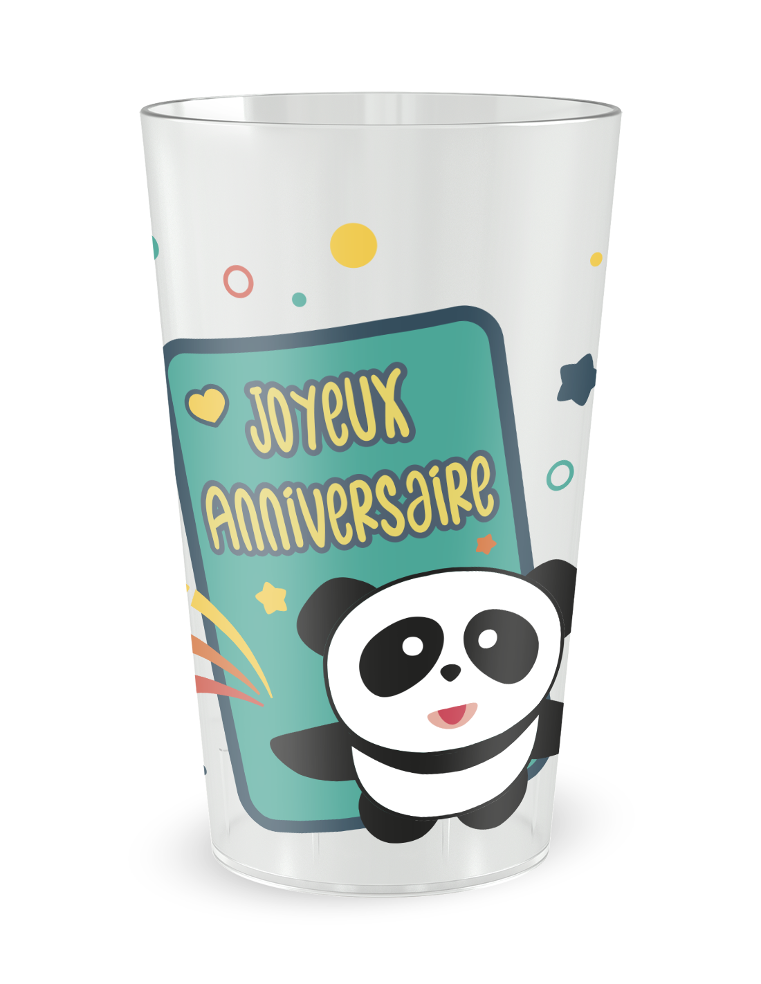 Gobelet transparent de face - anniversaire enfant panda - Ecocup