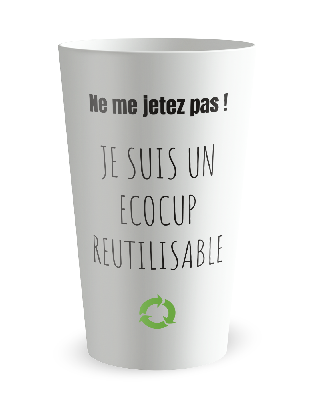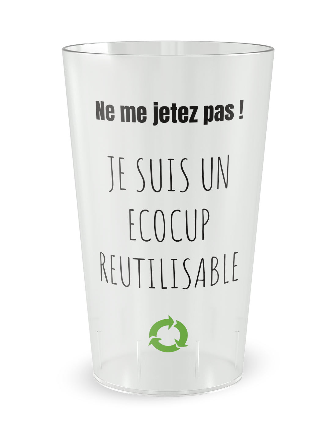 L'esthétique de ce modèle a été pensée pour être immédiatement identifiable, avec un message clair qui incite à la conservation et au réemploi. Ces gobelets publicitaires utilisent une typographie moderne et un graphisme épuré pour que la mention "Ne me jetez pas" devienne un élément décoratif à part entière, sublimant votre logo d'entreprise. Grâce à notre technologie d'impression de haute précision, le rendu des couleurs est éclatant et les contrastes sont saisissants, que vous choisissiez une finition givrée élégante ou un blanc opaque dynamique. Ce soin apporté au visuel garantit que l'objet soit perçu comme un objet de valeur, que l'on a plaisir à garder sur son bureau plutôt que de le laisser derrière soi. Ce design stratégique transforme chaque utilisateur en un acteur de votre démarche, prolongeant la visibilité de votre marque bien au-delà de la zone de service initiale.