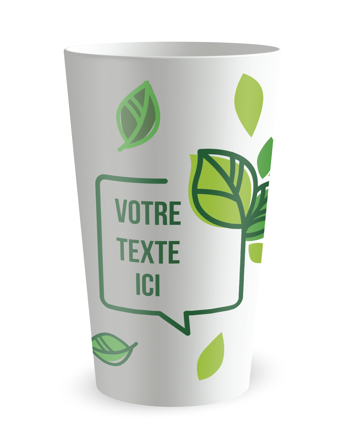Le design de ce modèle repose sur une composition graphique délicate où les motifs semblent tomber du ciel avec une légèreté infinie. Ce gobelet plastique personnalisé met en scène une cascade de feuillages finement dessinés, créant un cadre naturel qui sublime la transparence givrée de la matière. L'impression numérique de haute précision permet de restituer chaque nuance chromatique et chaque trait avec une netteté absolue, garantissant que le visuel reste éclatant sous toutes les lumières. Cette pluie végétale n'est pas seulement décorative ; elle apporte une profondeur visuelle qui valorise le contenu, qu'il s'agisse d'un cocktail coloré ou d'une eau infusée. La fusion parfaite de l'encre avec le polymère assure que ce décor sophistiqué résiste aux manipulations répétées, conservant son raffinement du début du vin d'honneur jusqu'à la fin de la soirée.