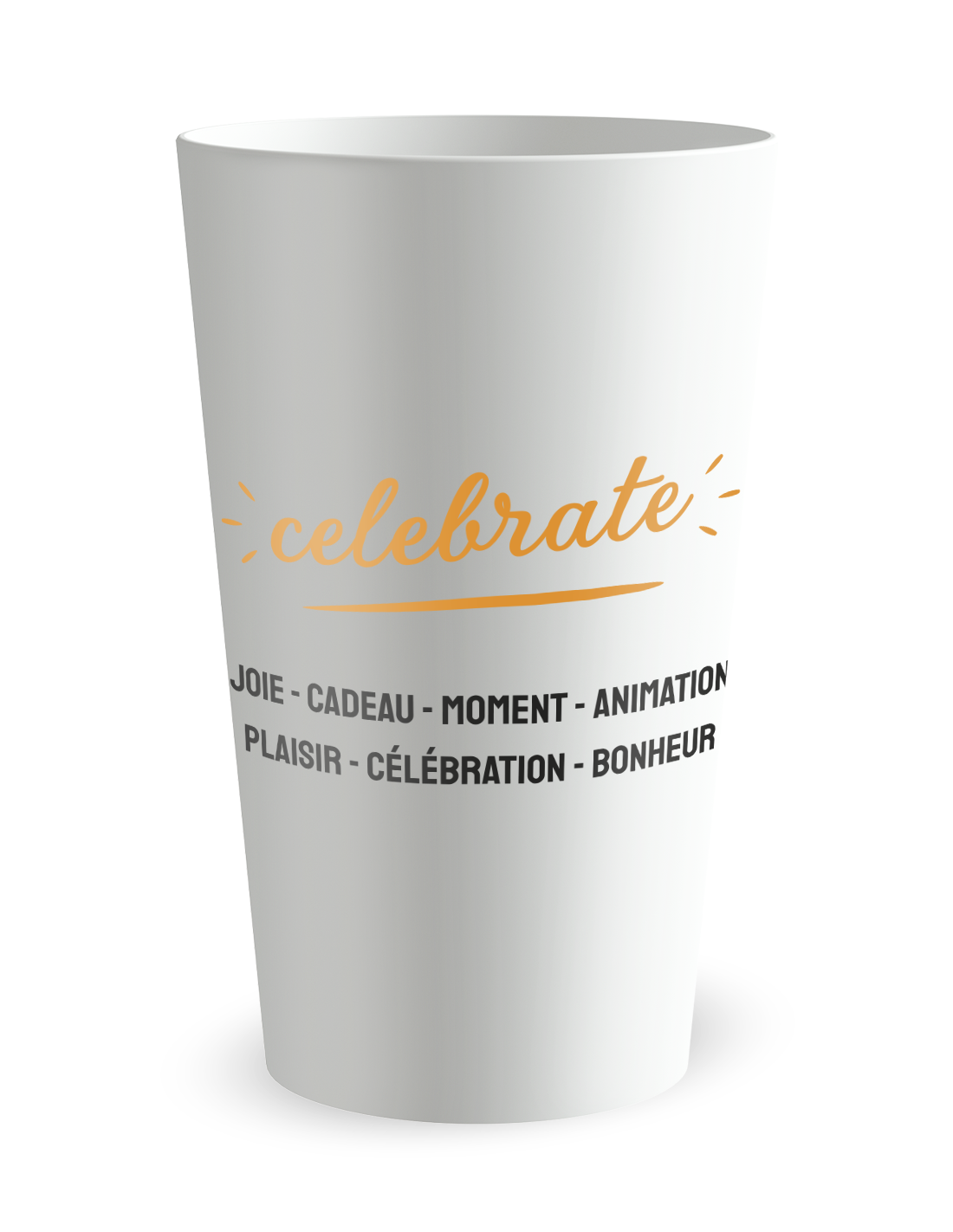 Le gobelet personnalisé Gobelet personnalisé Comité Entreprise Celebrate - 25 CL se positionne comme le support de communication idéal pour fédérer vos équipes autour des moments forts de la vie de votre société. Que ce soit pour un séminaire annuel, une fête de fin d'année ou l'inauguration de nouveaux bureaux, ce contenant insuffle une atmosphère de réussite et de cohésion. Bien plus qu’un simple accessoire de service, il incarne la reconnaissance de l'entreprise envers ses collaborateurs, transformant chaque pause ou cocktail dînatoire en un véritable temps de célébration collective. En choisissant ce design "Celebrate", vous offrez à vos salariés une expérience visuelle soignée qui valorise l'image de marque de votre Comité Social et Économique (CSE). Chez Ecocup, nous mettons notre expertise au service de votre culture d'entreprise pour que chaque détail, du graphisme élégant à la qualité du matériau, soit le reflet d'une organisation dynamique, unie et engagée.