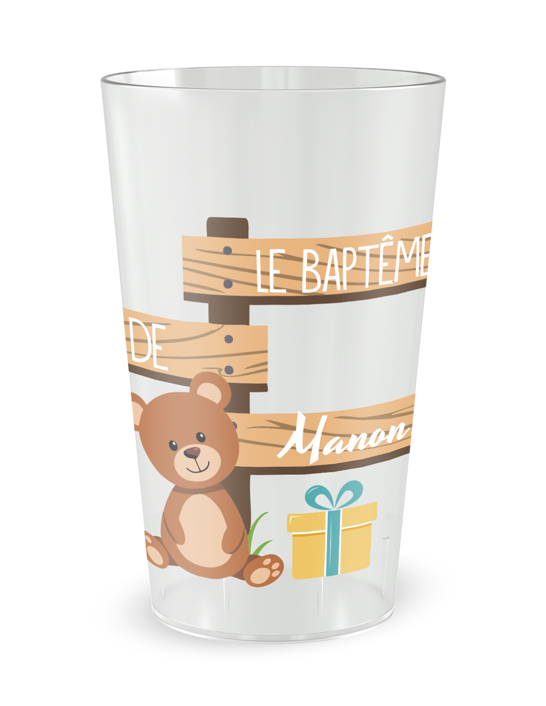 Gobelet transparent de face - Baptême Compagnon Ourson - Ecocup