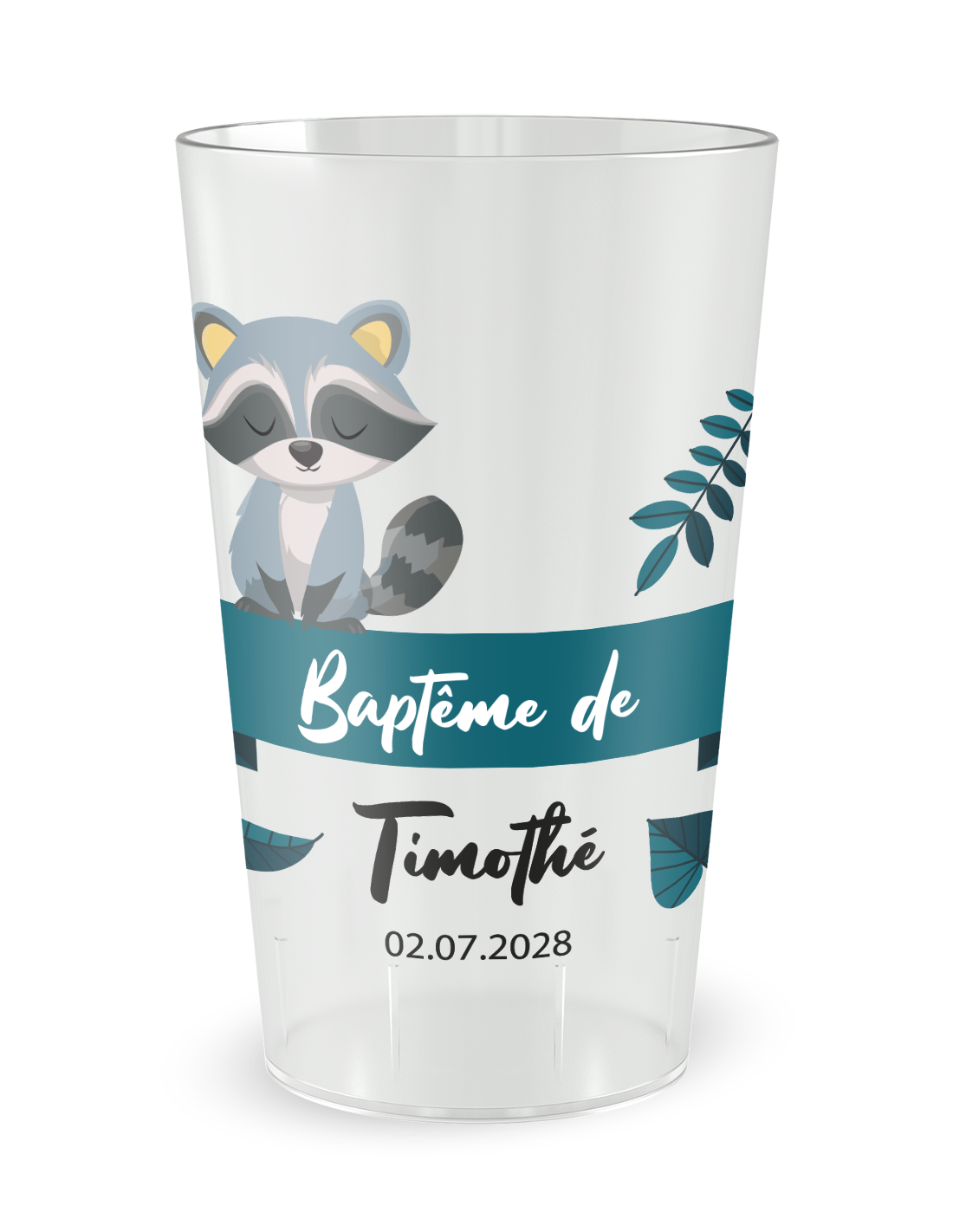 Gobelet personnalisé Baptême Raton Laveur - 25 CL