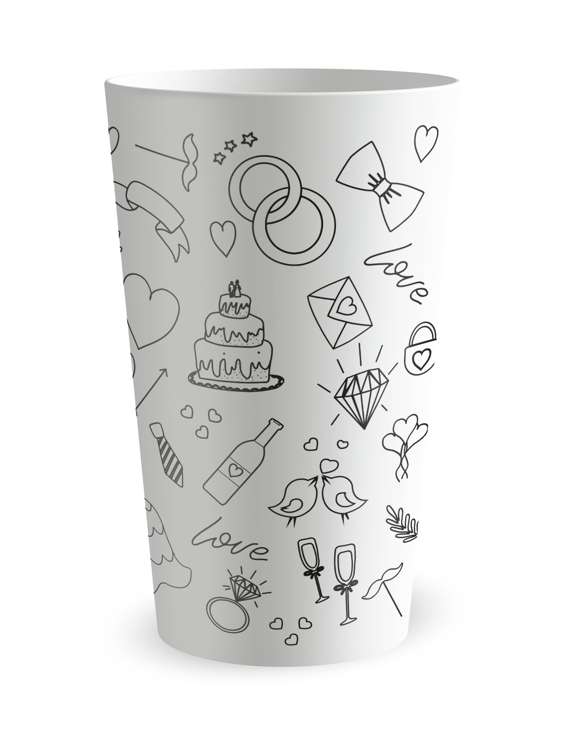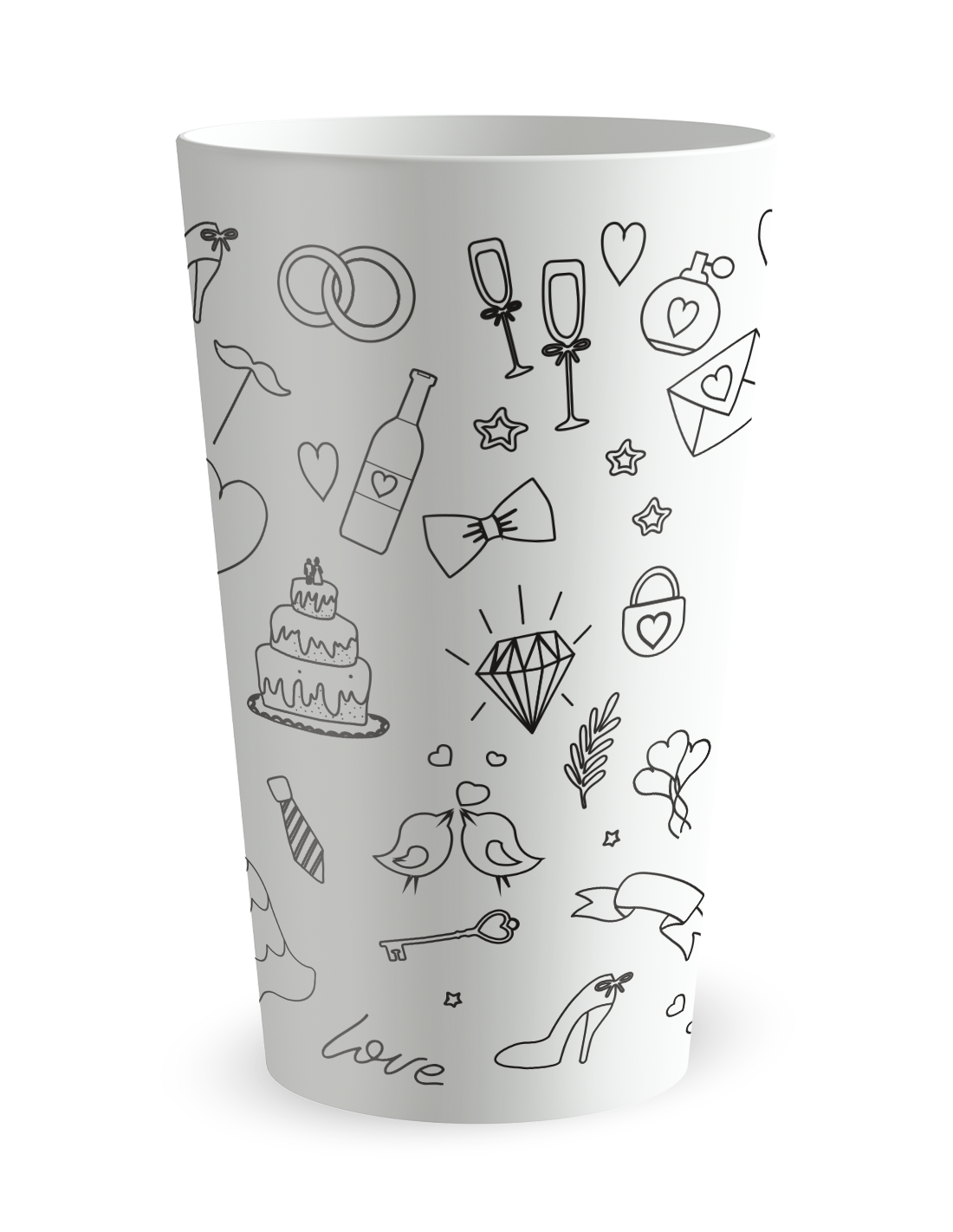 Ce modèle composé de dessins façon croquis apporte une touche artistique à votre cérémonie. En ajoutant vos prénoms et la date, vous créez un visuel dans l’air du temps, simple à reconnaître. Un gobelet qui accompagne votre décor sans en faire trop.