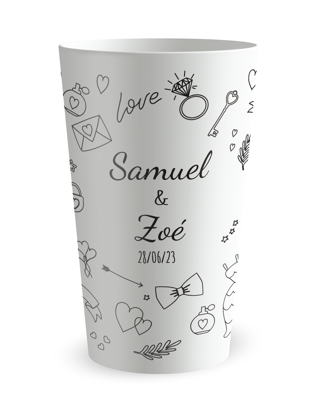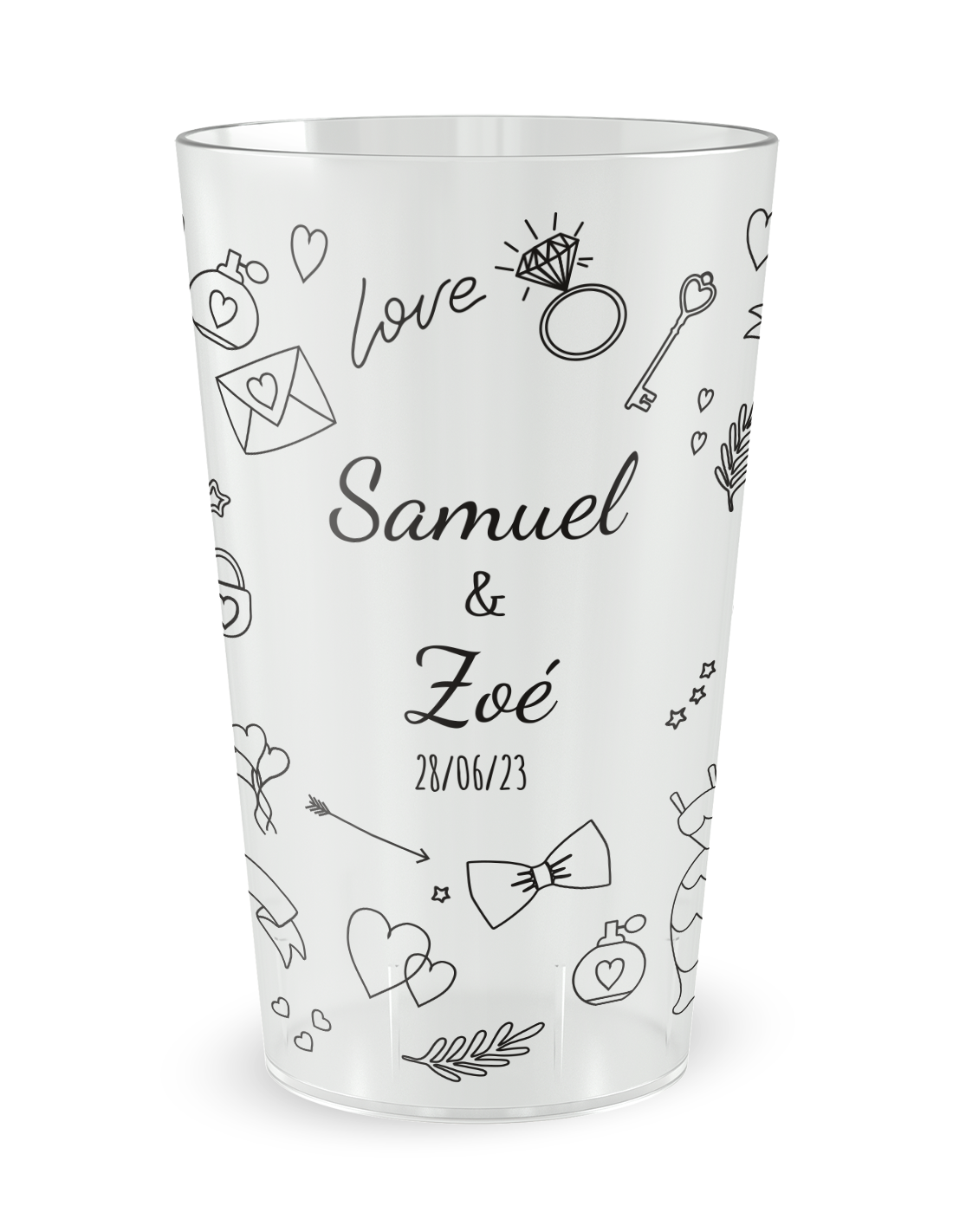 Gobelet personnalisé mariage dessins à la main - 25 CL