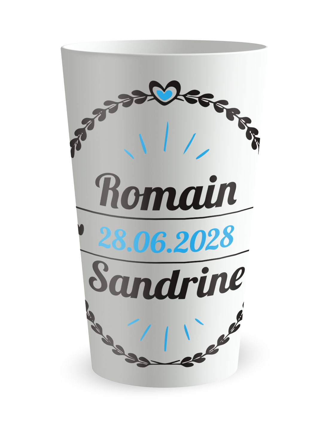 Gobelet blanc - Prénom - mariage lauriers - Ecocup