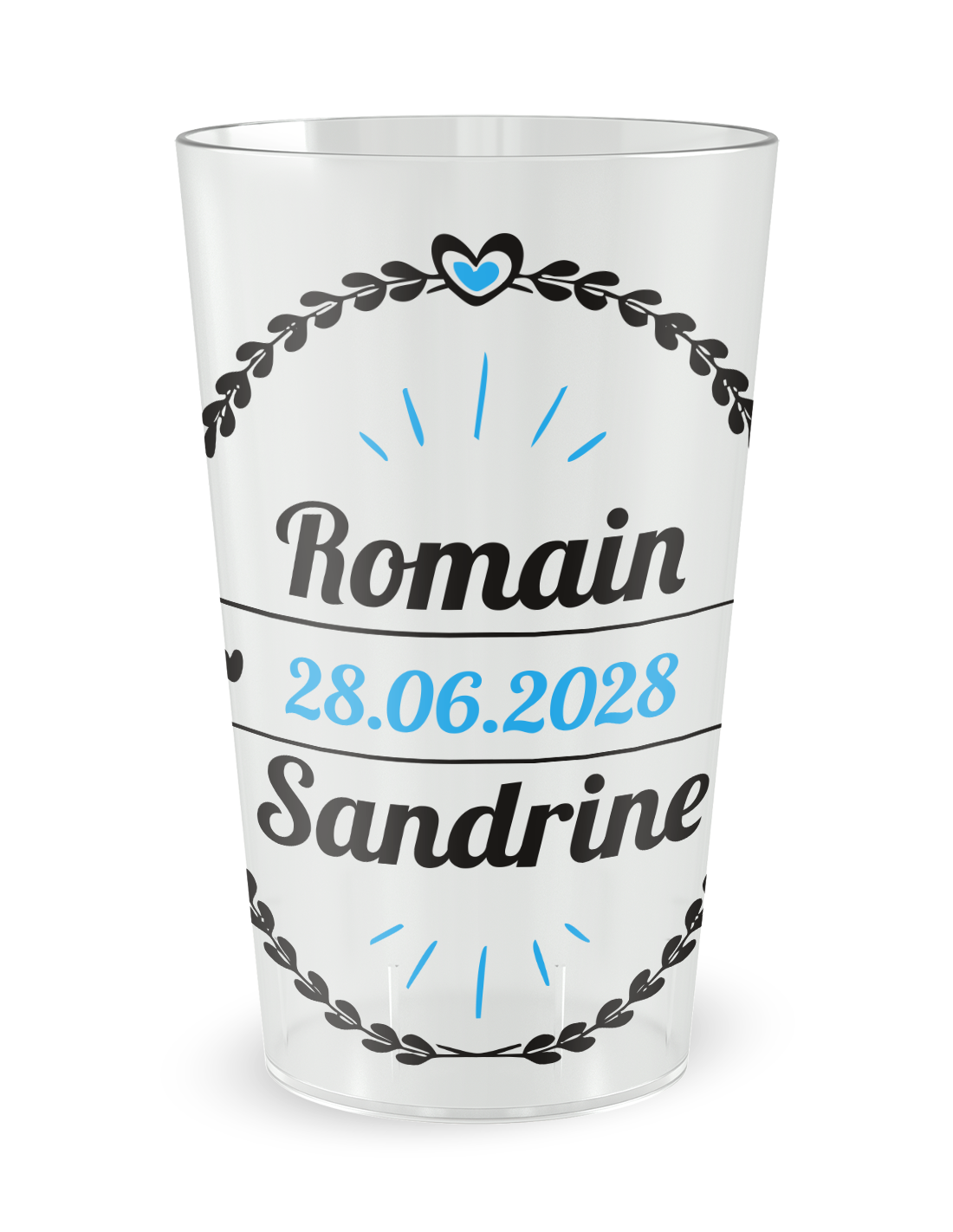 Gobelet transparent - Prénom - mariage lauriers - Ecocup