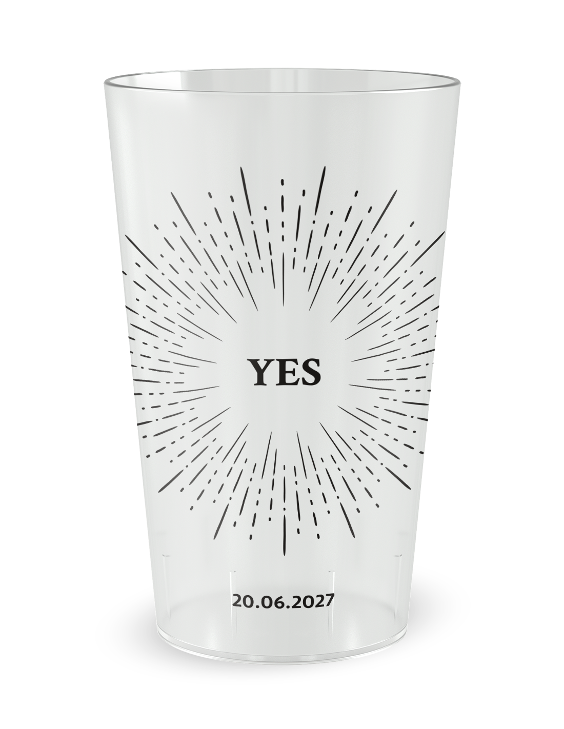 Le graphisme de ce modèle repose sur une typographie audacieuse et moderne, où le mot "Yes" capture toute l'attention par sa finesse et son équilibre. Ce verre personnalisé mariage a été conçu pour ceux qui souhaitent un visuel percutant sans être surchargé, permettant à l'essence même de la fête de s'exprimer avec clarté. La précision de l'impression, réalisée via nos technologies numériques ou sérigraphiques de pointe, garantit une netteté absolue des contours, faisant ressortir le message sur la paroi givrée ou blanche du contenant. Cette esthétique épurée sublime la robe de vos cocktails, la transparence des eaux infusées ou la pétillance de vos boissons festives. C'est l'assurance d'une table soignée où chaque détail participe à créer une identité visuelle forte et cohérente, captivant le regard de vos proches dès la première prise en main.