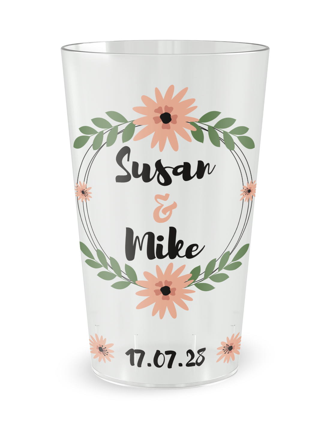 Gobelet transparent de face - mariage fleurs et amour - Ecocup