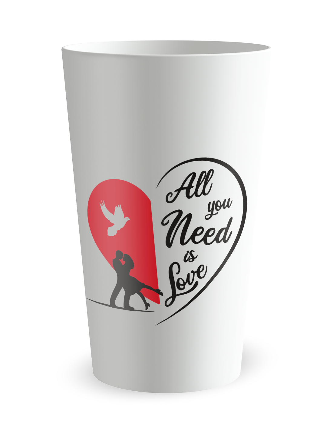 Gobelet blanc de face - mariage cœur rouge - Ecocup