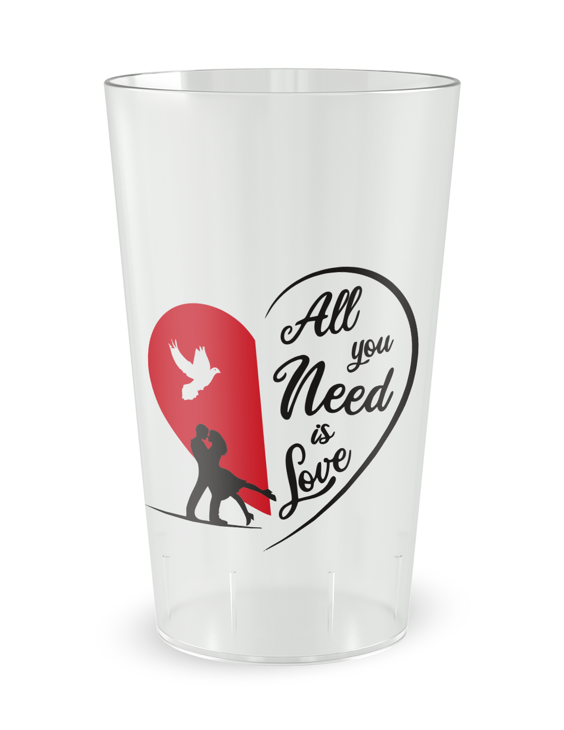 Gobelet transparent de face - mariage cœur rouge - Ecocup