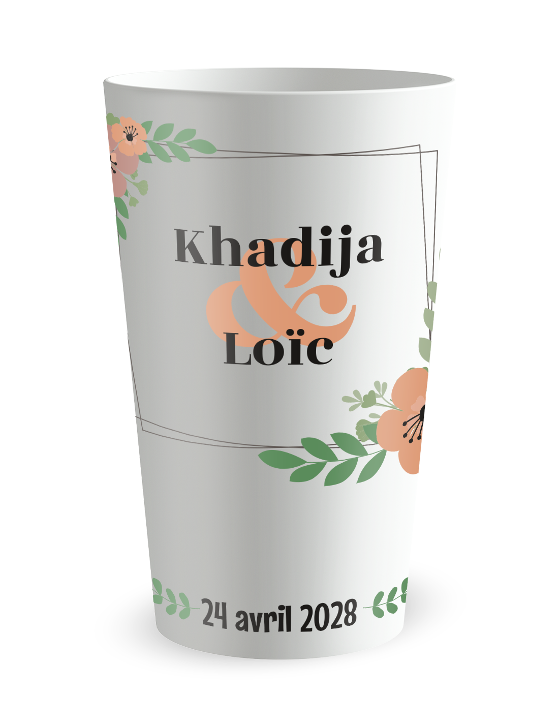 Gobelet personnalisé mariage cadre floral - 25 CL