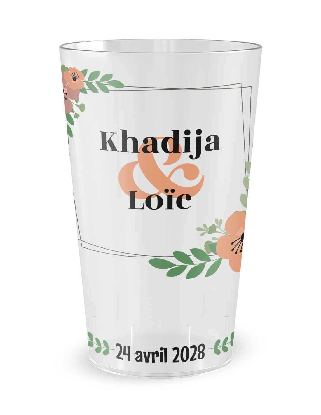 Gobelet transparent de face - mariage cadre floral - Ecocup