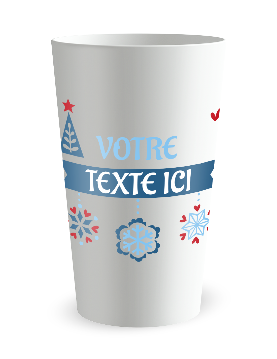 Ce gobelet Ecocup spécial fin d’année, guirlande de flocons et bannière sapin + cœur, pose le décor sans effort. Vous adaptez texte et couleurs pour le rendre plus discret ou plus joyeux. En fin de soirée, il devient un souvenir que vos invités pourront glisser dans un sac et ressortir l’année suivante.