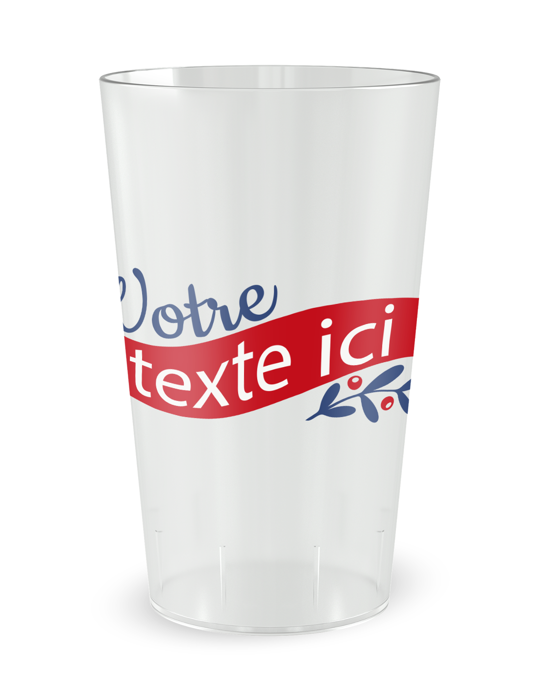 L'esthétique de ce modèle repose sur une interprétation moderne des classiques de l'hiver. Ce verre plastique personnalisé met en scène des branches de houx aux baies éclatantes, dont le rouge profond contraste magnifiquement avec le vert persistant des feuilles. L'impression numérique de haute précision permet de restituer chaque nuance avec une clarté exceptionnelle, offrant un rendu haut de gamme qui capte la lumière des bougies de votre table. La fusion de l'encre avec le polypropylène garantit une tenue irréprochable face à l'humidité et aux manipulations répétées. La texture givrée du gobelet apporte une dimension sensorielle unique, évoquant la délicatesse du givre hivernal tout en assurant une finition premium qui s'intègre parfaitement à une vaisselle de fête sophistiquée.