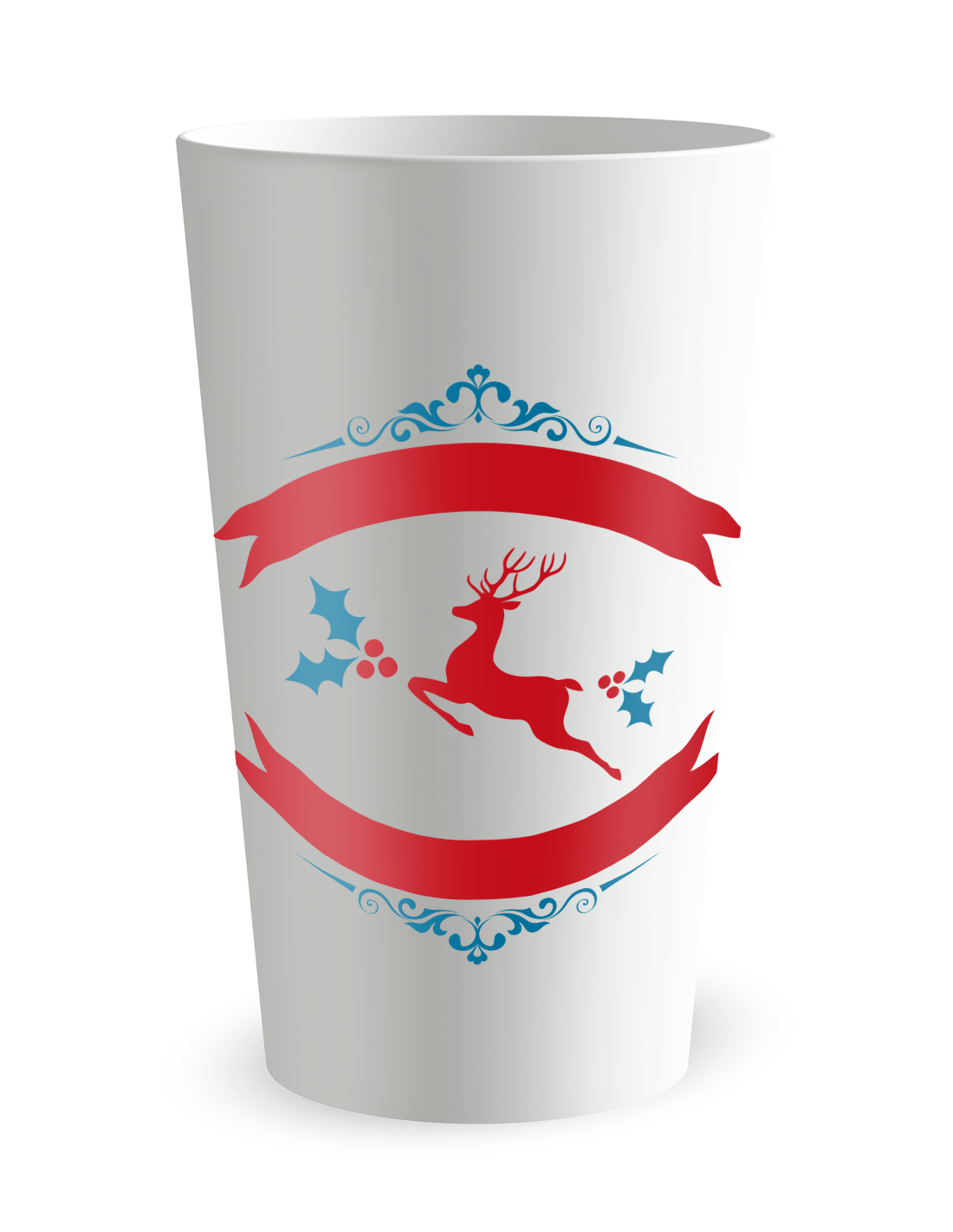 Cerf, ornements et houx : ce gobelet rassemble les codes classiques de Noël dans un visuel unique. Vous y ajoutez votre texte, un prénom ou un “Joyeuses fêtes” plus général. Il fonctionne pour les repas à la maison, les soirées d’équipe ou les marchés de Noël.