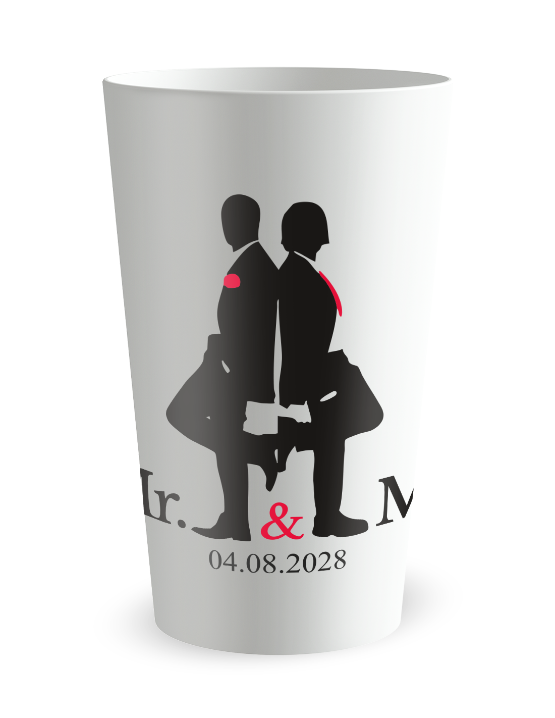 Exprimez votre amour avec ce gobelet de mariage “Mister and Mister”. L’inscription est assumée, le message est clair. Ajoutez la date, une photo, quelques mots personnels : vous gardez la main sur chaque détail de la personnalisation de votre Ecocup.