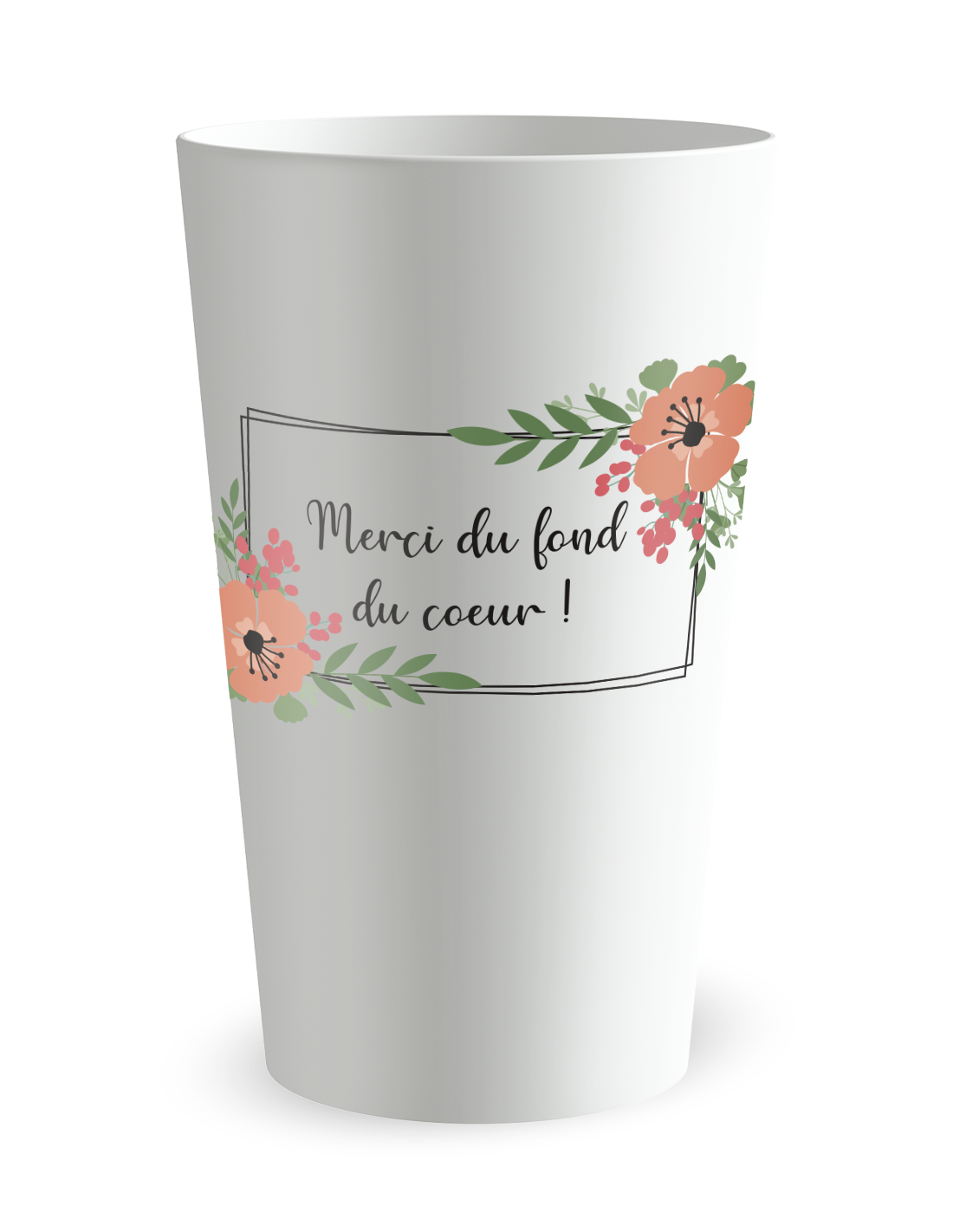 Célébrer l'union de deux destinées exige une scénographie où chaque détail raconte votre histoire, et c'est exactement ce qu'incarne avec brio le gobelet personnalisé mariage au travers du modèle Gobelet personnalisé mariage fleurs vintage - 25 CL. L'organisation du plus beau jour de votre vie requiert des attentions singulières qui marquent les esprits tout en s'inscrivant dans une démarche engagée et responsable. Fini la verrerie fragile qui génère du stress lors du vin d'honneur ou des festivités en plein air ; place à un contenant ingénieux qui conjugue merveilleusement la poésie d'antan avec la modernité d'un usage totalement serein. Vos convives seront indéniablement charmés de découvrir cette pièce maîtresse délicatement disposée sur vos tables de banquet, peut-être entourée de feuillages et de délicates couronnes florales. Cet objet iconique remplace l'éphémère par l'excellence, imposant d'emblée une atmosphère romantique, chaleureuse et terriblement élégante. En choisissant cette alternative intelligente, vous transcendez le simple service des boissons pour offrir à vos proches une véritable expérience visuelle et émotionnelle, parfaitement en accord avec le thème bucolique et rétro de votre réception majestueuse.