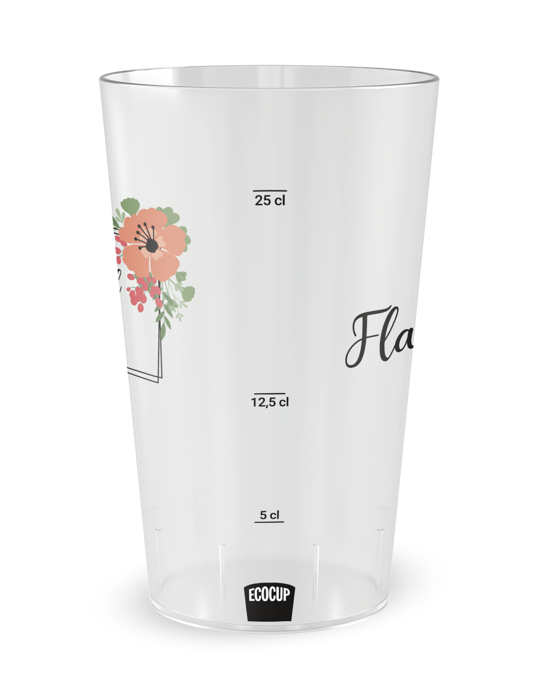 Gobelet transparent de dos - mariage fleurs vintage - Ecocup