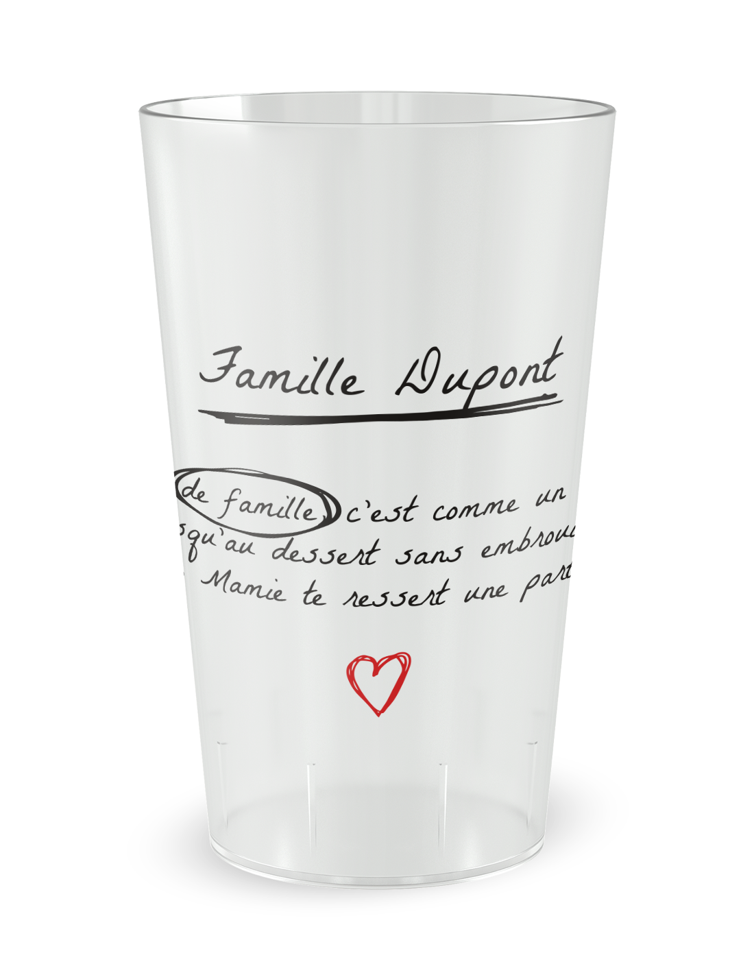 De gepersonaliseerde familiebeker is het onmisbare accessoire om uw reünies te bezegelen, en de Gepersonaliseerde Beker Familie & Vrienden Familiefeest - 25 CL is daar de meest gezellige uitdrukking van. Het organiseren van een familiebijeenkomst, of het nu een neven- en nichtenfeest, een intergenerationele verjaardag of een eenvoudige feestelijke zondag is, vraagt om voorwerpen die verbinding creëren. Dit drinkgerei is niet zomaar een serveeraccessoire; het wordt het symbool van een geslacht en een gemeenschappelijke geschiedenis gedeeld rond een rijkelijk gedekte tafel. Door wegwerpoplossingen te vervangen door dit intelligente alternatief, geeft u een vleugje professionaliteit en elegantie aan uw privé-evenement. De aanwezigheid ervan op uw buffetten zorgt voor een onmiddellijke visuele consistentie, waarbij elke verfrissing wordt omgetoverd tot een moment van authentieke gezamenlijkheid, waar het plezier van samenzijn af te lezen is tot op het drinkgerei dat men in de hand houdt.