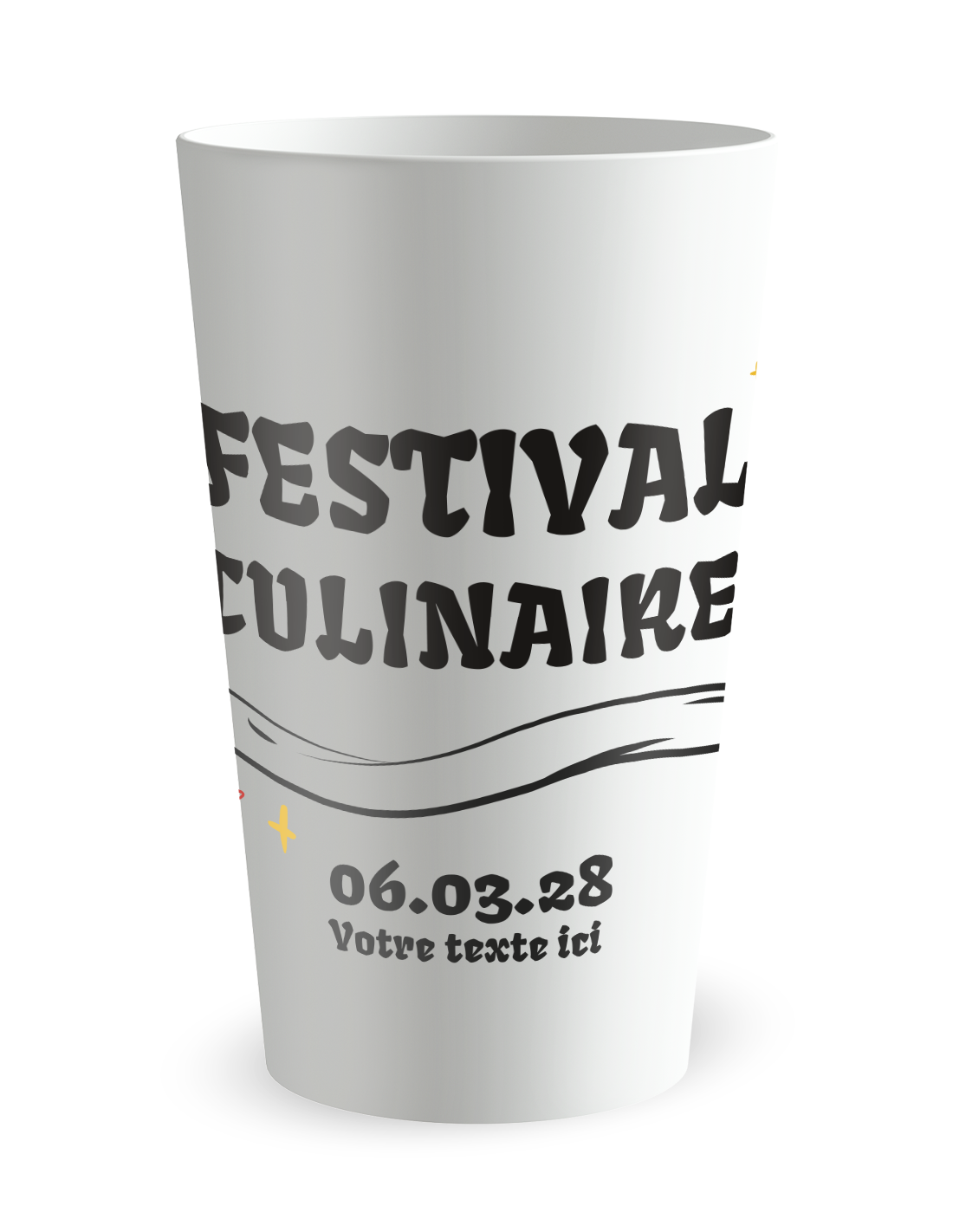 De gepersonaliseerde beker Festival Culinaire - 25 CL presenteert zich als het onmisbare accessoire om uw gastronomische evenementen, proeverijen of prestigieuze recepties te verfraaien. In een wereld waar de zintuiglijke ervaring koning is, biedt deze beker van 25 cl een zeldzame veelzijdigheid, geschikt voor zowel het serveren van ambachtelijke verfrissingen als koude culinaire creaties. Dit model kiezen betekent kiezen voor een intelligente alternatief dat wegwerpbekers voordelig vervangt door een iconisch object, ontworpen om langdurig in de handen van fijnproevers te circuleren. De uitgebalanceerde vorm en het thematische ontwerp gewijd aan gastronomie maken het een krachtige merkimagedrager, die elke proeverij transformeert in een echt memorabel moment van delen. Bij Ecocup zetten we onze expertise in dienst van uw identiteit, zodat deze beker de getrouwe weerspiegeling wordt van uw kwaliteitsnormen en uw passie voor smaak.