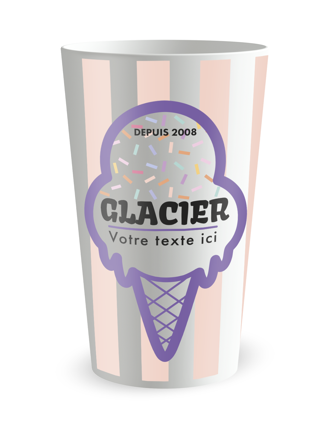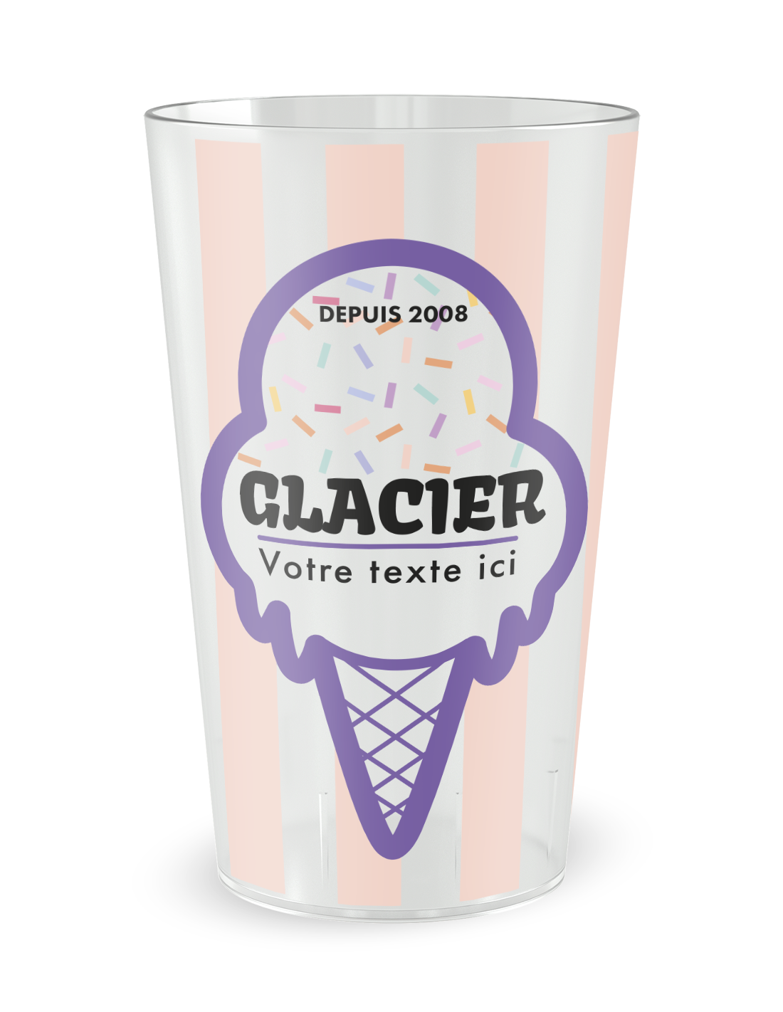 De gepersonaliseerde beker Gepersonaliseerde beker IJs - 25 CL positioneert zich als het onmisbare accessoire om de sfeer van uw zomerevenementen, verjaardagsfeestjes of openingen van pop-upwinkels te verfrissen. Vanaf de eerste blik neemt het ontwerp, dat verlekkerdheid en frisheid oproept, uw gasten mee naar een zoete en kleurrijke wereld. Veel meer dan een simpele houder, wordt het een speels visueel hulpmiddel dat uw meest ijzige dranken verheft, van ambachtelijke siropen tot heerlijke verse vruchtensappen. Door deze thematische afbeelding te kiezen, biedt u uw gasten een meeslepende ervaring waarbij elke slok rijmt met plezier en gezelligheid. Bij Ecocup stellen we onze expertise ten dienste van uw ontspannende momenten, zodat elk detail, van de gastronomische spiraal tot de transparantie van het materiaal, een weerspiegeling is van een zorgvuldige organisatie die resoluut gericht is op hergebruik.
