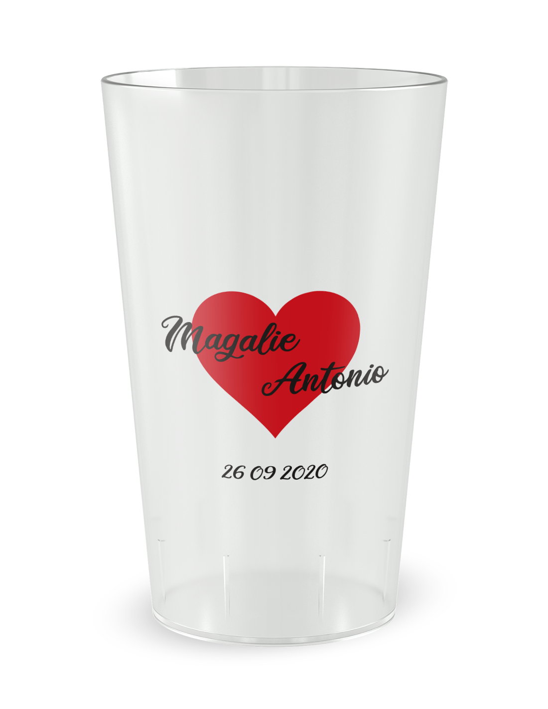 Om een complete en verfijnde feestbeleving te bieden, vergeet niet uw gepersonaliseerde bekers te begeleiden met onze herbruikbare Ecocup champagnefluiten, perfect voor memorabele toasts.