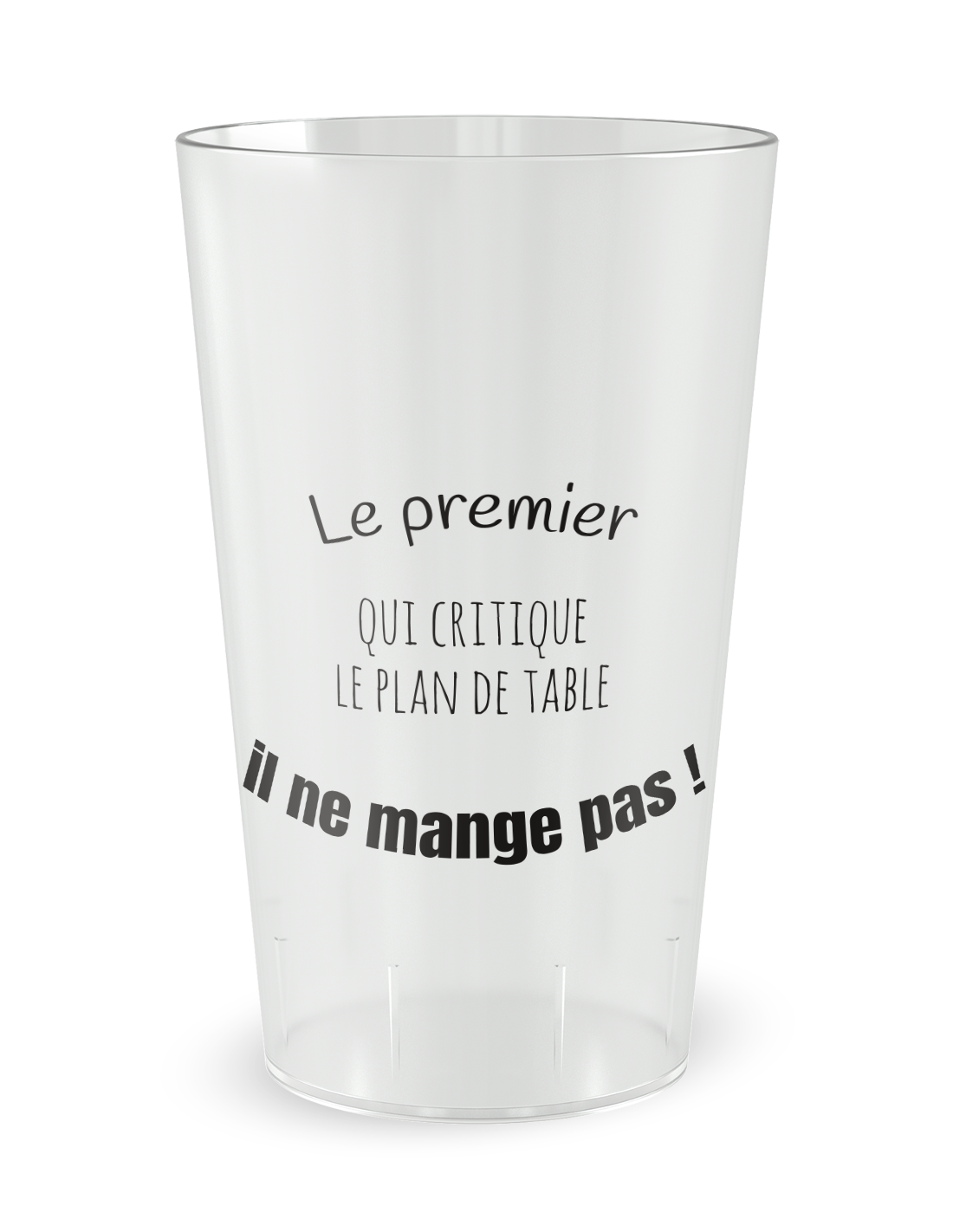 De onweerstaanbare aantrekkingskracht van deze speciale editie ligt in zijn verfijnde esthetiek, ontworpen om te harmoniëren met de meest veeleisende decoraties. De motieven en typografie ontvouwen zich met chirurgische precisie over de gehele cilindrische wand, wat een visueel evenwicht van ongekende juistheid creëert. Of u nu bezwijkt voor de charme van een elegante, doorschijnende, matte textuur, die de glinsterende reflecties van uw cocktails subtiel laat ontsnappen, of kiest voor de kracht van een stralende, ondoorzichtige witte achtergrond die de intensiteit van de pigmenten vertienvoudigt, het resultaat blijft spectaculair. De hightech inkt versmelt letterlijk met het plastic materiaal, waardoor dit majestueuze gepersonaliseerde glas verandert in een authentiek klein kunstwerk. Deze grafische identiteit past goddelijk bij elk type decoratie, van landelijke sferen tot de meest geraffineerde stedelijke atmosferen, en verlicht uw ruimte met een vleugje absolute flair.