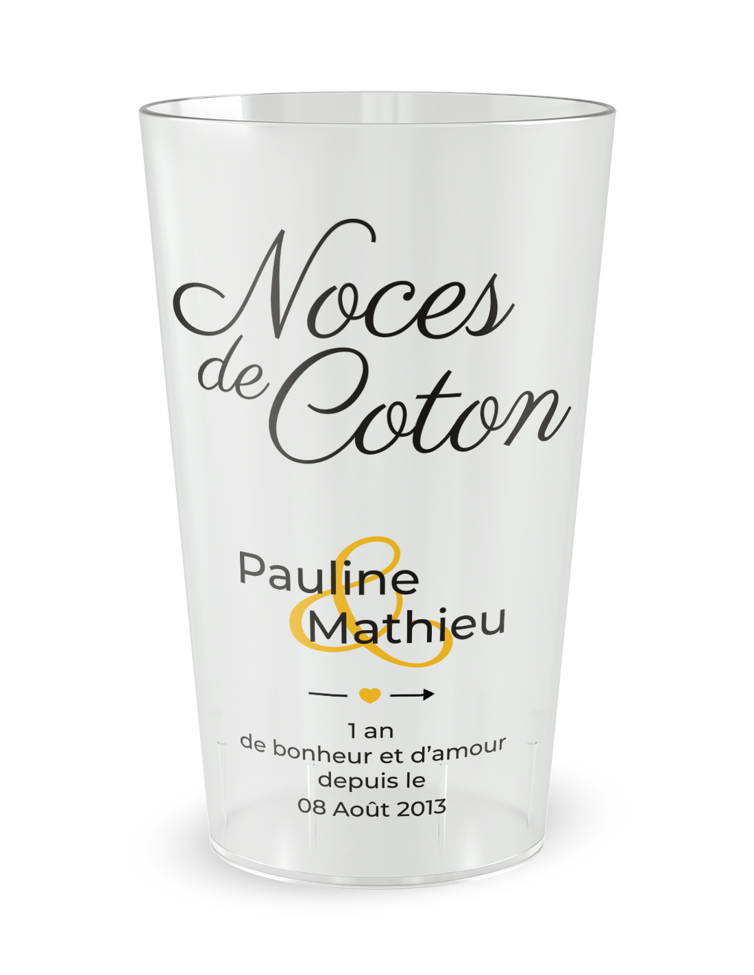 Transparante beker aan de voorkant - 1e Huwelijksjaar Katoen - Ecocup