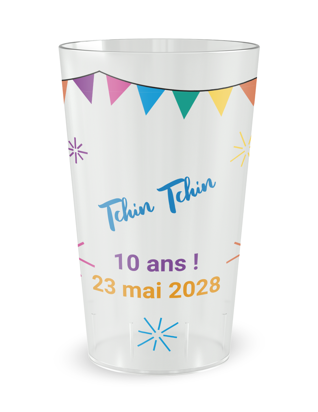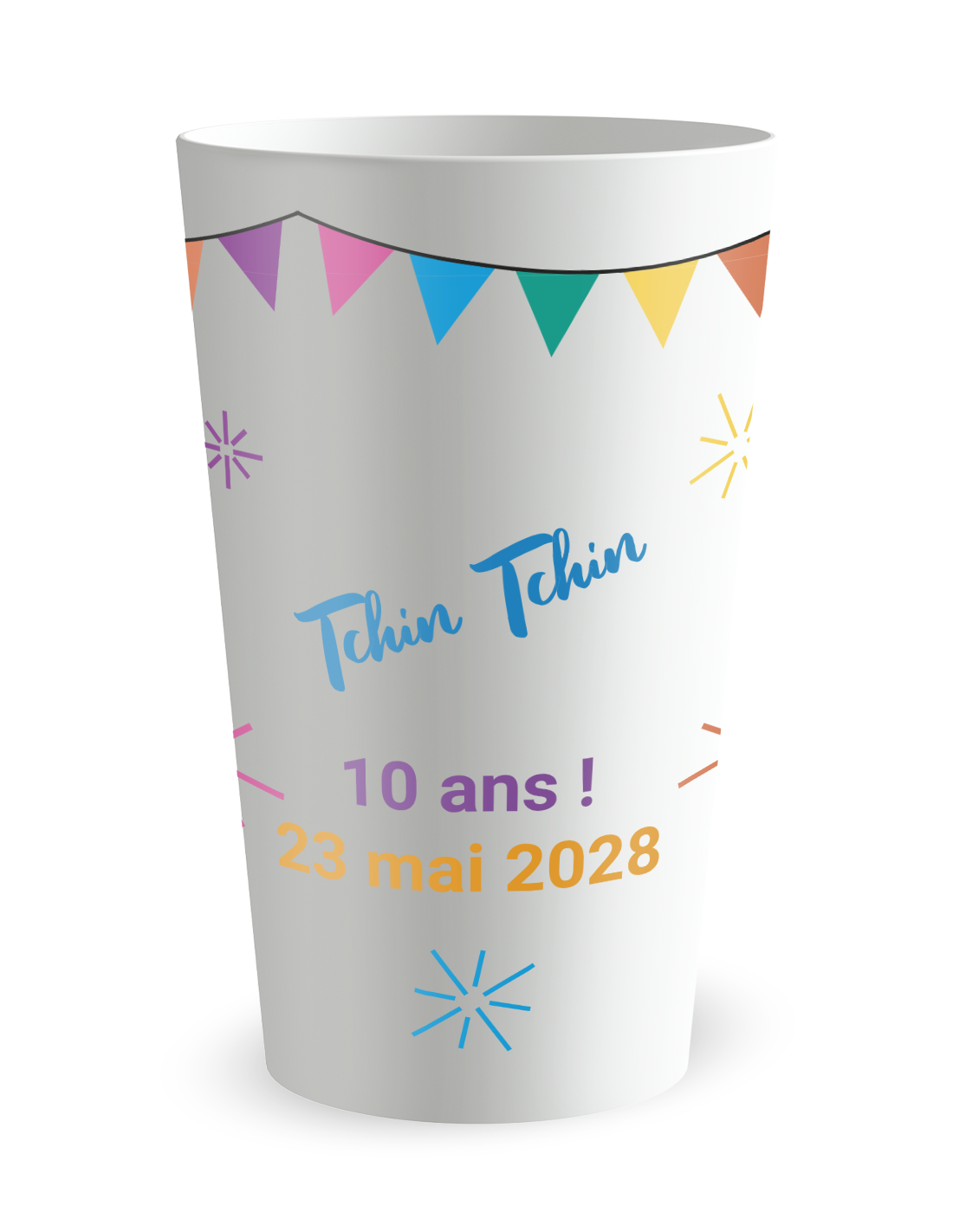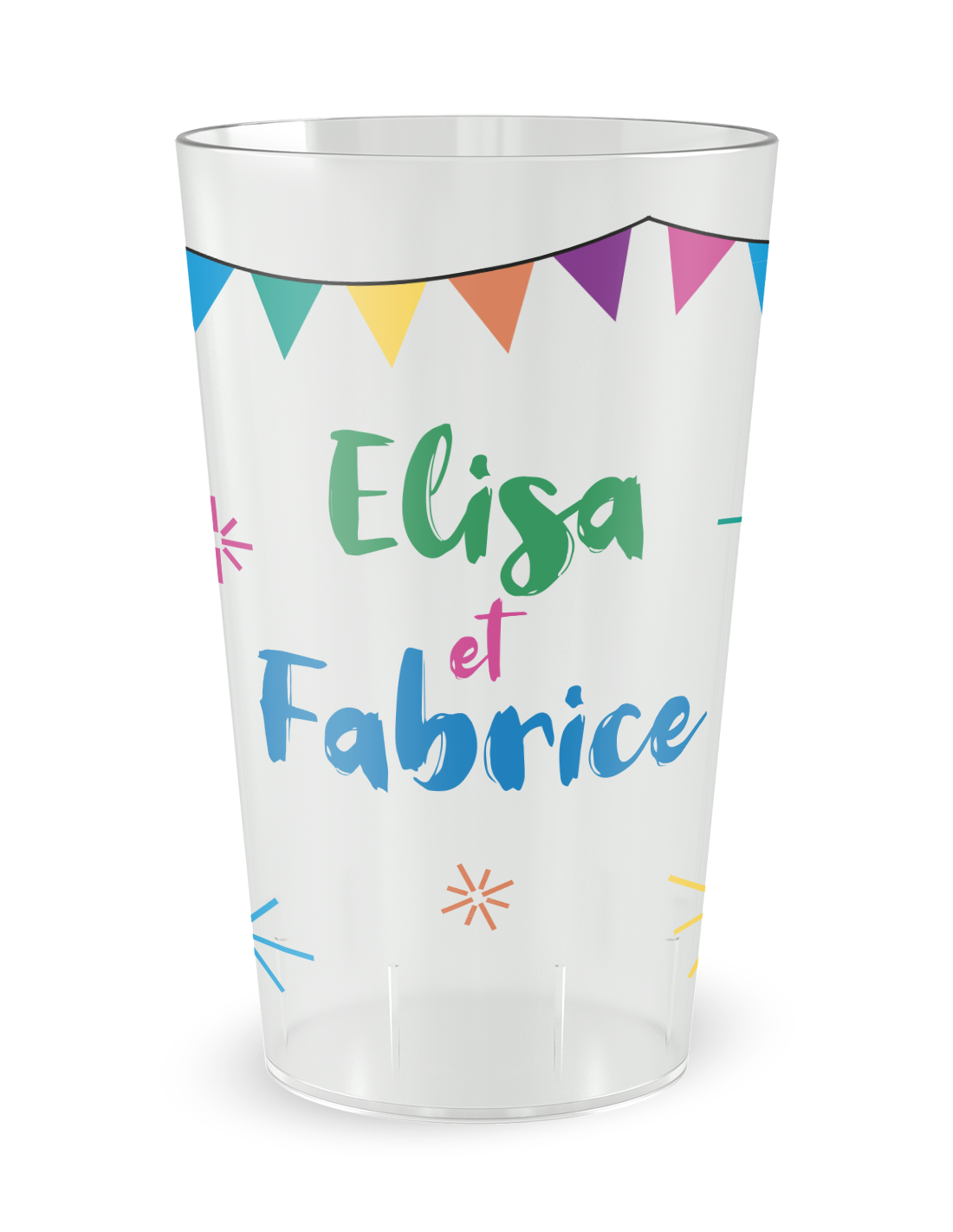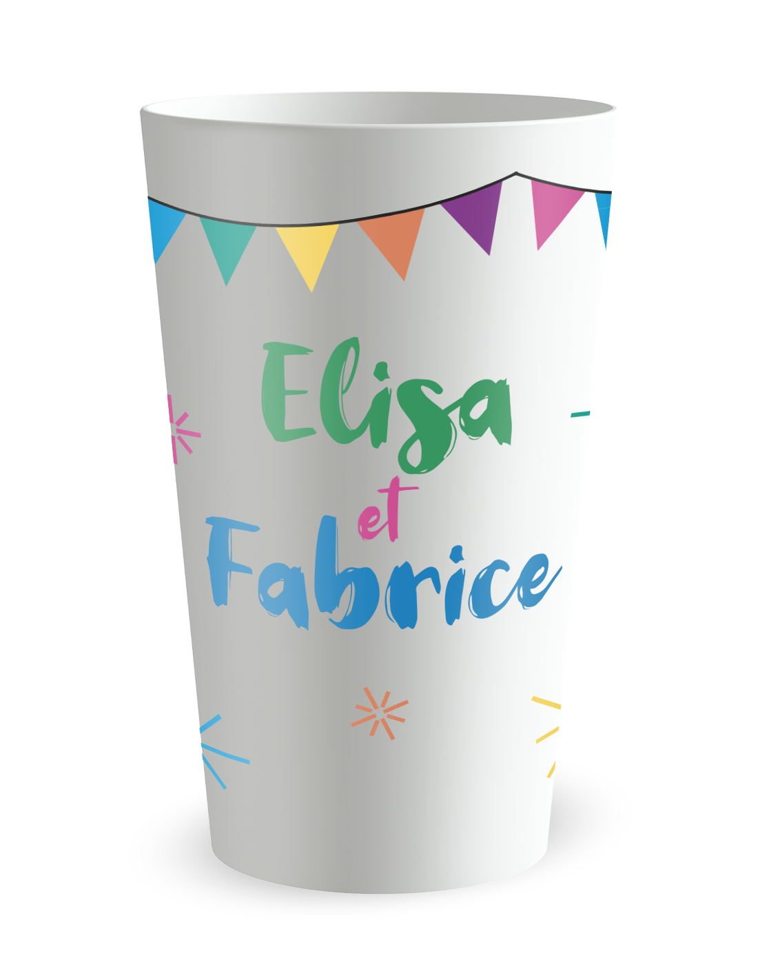 De gepersonaliseerde trouwbeker met het motief 'Gepersonaliseerde trouwbeker ja feestelijk - 25 CL' is het onmisbare accessoire om uw verbintenis om te toveren in een viering vol energie en vrolijkheid. Het uitspreken van het "Ja" is de stichtende daad van uw nieuwe gemeenschappelijke leven, en dit model vangt precies deze euforie van het moment waarop de verbintenis een gedeeld feest wordt. Door deze verantwoorde beker te kiezen, biedt u uw gasten niet alleen een gebruiksvoorwerp, u plaatst een ware blikvanger van vreugde op uw receptietafels. Of uw evenement nu plaatsvindt in een moderne receptiezaal, onder een elegante feesttent of tijdens een ontspannen tuinfeest, dit dynamische ontwerp creëert een instant visuele harmonie die al uw dierbaren uitnodigt om het glas te heffen op uw toekomstig geluk.