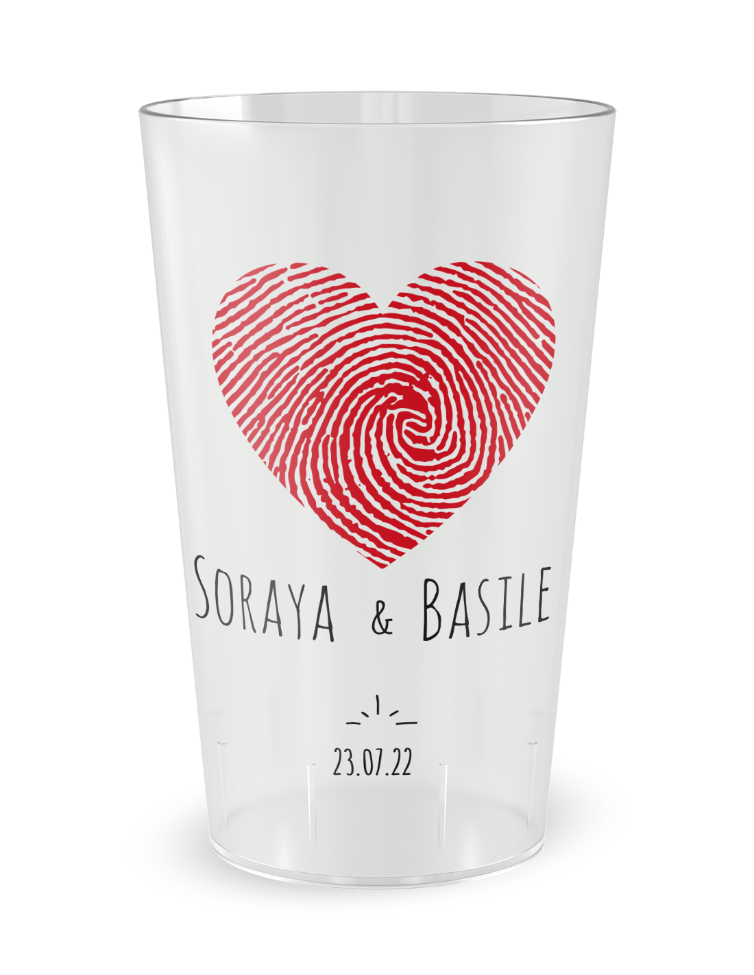 Transparante beker aan de voorkant - trouwbeker hartprint - Ecocup