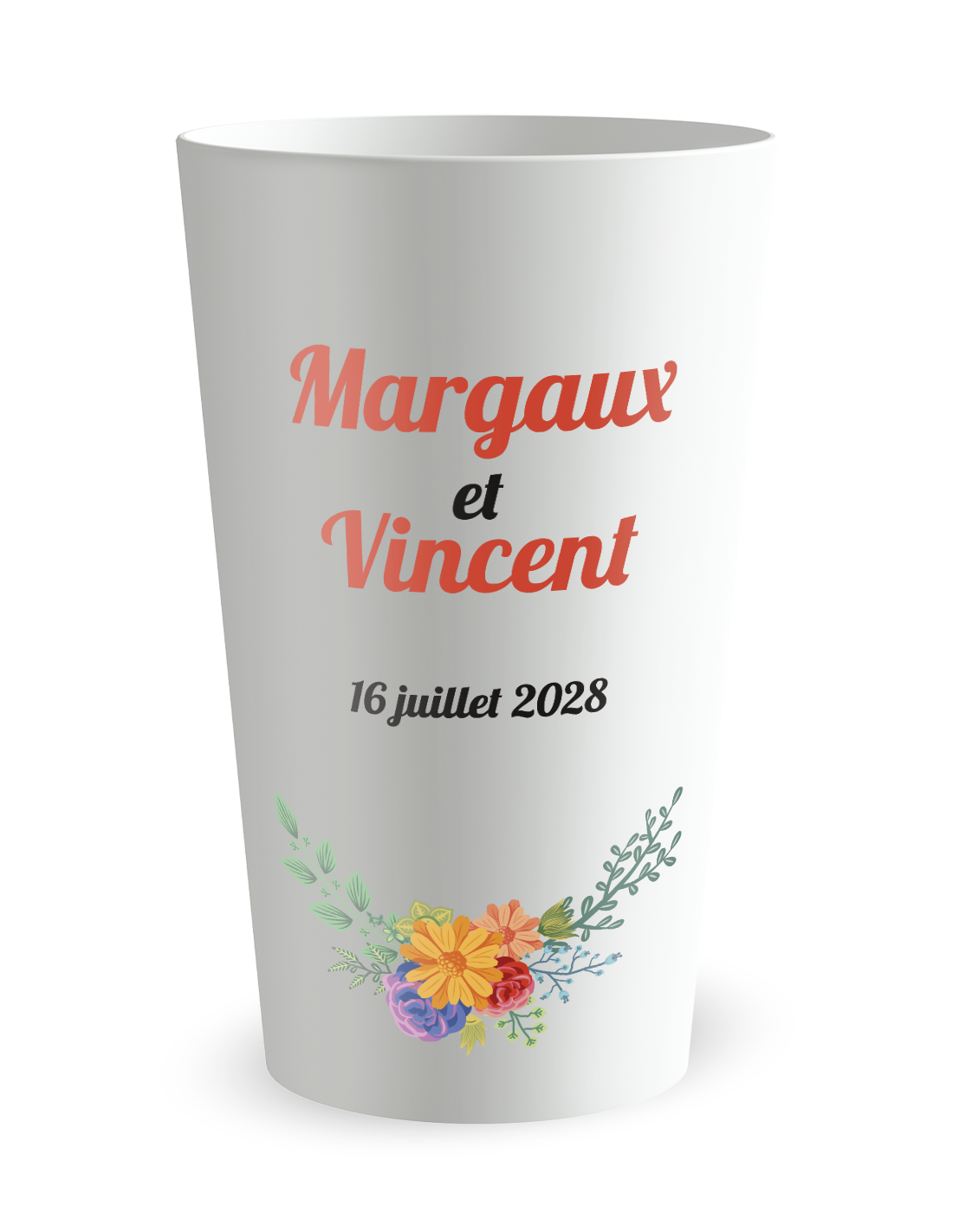 Om uw huwelijkstoosts te verfraaien en uw gepersonaliseerde bekers harmonieus te begeleiden, ontdek onze collectie herbruikbare Ecocup champagnefluiten. Deze verantwoorde bekers zijn ontworpen om lang mee te gaan en een zorgeloze viering te garanderen.