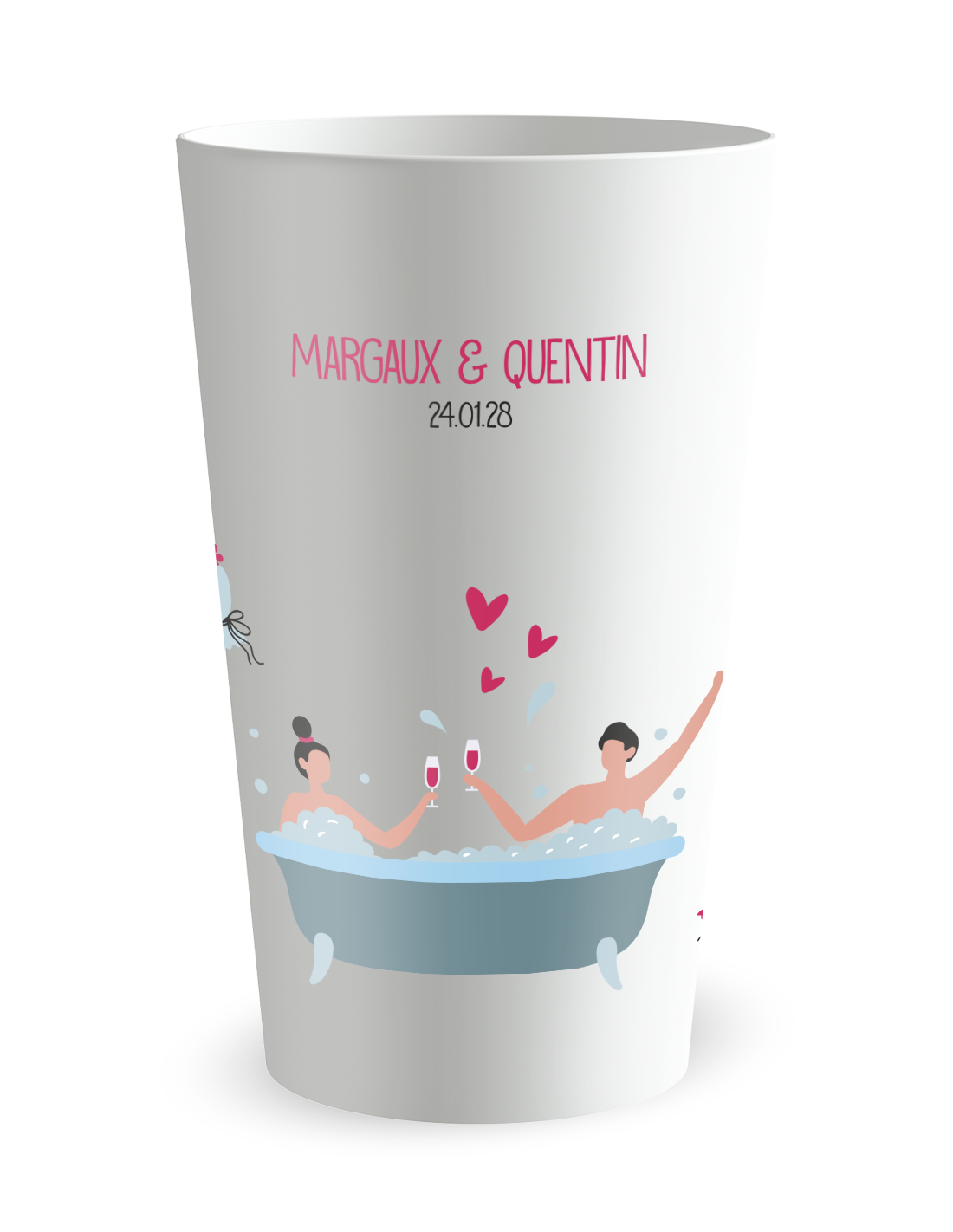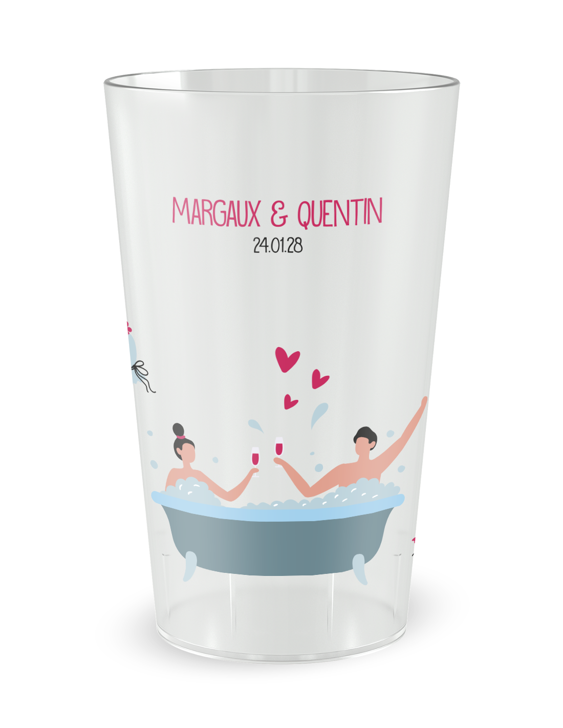 Naast de onmiddellijke feestvreugde, verandert deze beker in een echt verzamelobject dat uw dierbaren met plezier mee naar huis zullen nemen, waardoor de magie van uw verbintenis nog lang na het feest voortduurt. De kwaliteit van de personalisatie, versmolten in de wand van de beker, is bestand tegen herhaaldelijk gebruik en de tand des tijds, waardoor dit drinkgerei een origineel gastgeschenk wordt dat iedereen dagelijks thuis kan hergebruiken. Door een geschenk te geven dat zowel nuttig als vol karakter is, creëert u een sterke emotionele band tussen uw gasten en deze uitzonderlijke dag. Dit is het slimme alternatief dat wegwerpartikelen vervangt door een tastbare getuigenis, waardoor elke Gepersonaliseerde Trouwbeker Paar in Bad - 25 CL een duurzame herinnering wordt aan uw liefde en uw verbondenheid.
