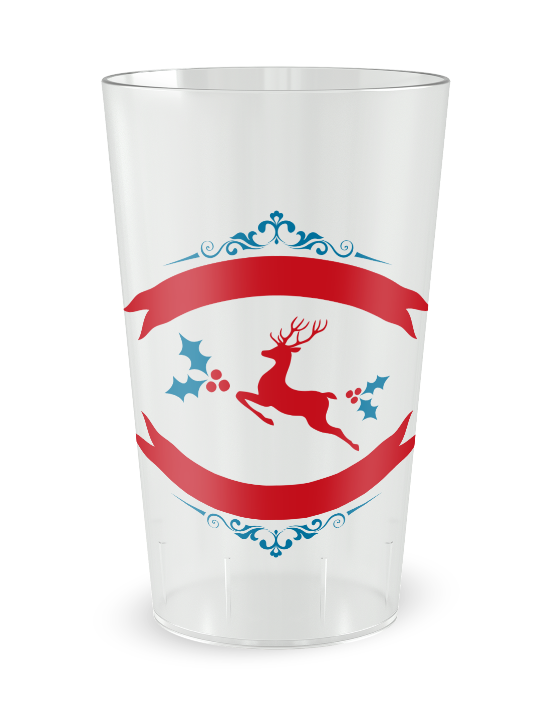 Hert, ornamenten en hulst: deze beker combineert de klassieke kerstcodes in één unieke visual. U voegt er uw tekst, een voornaam of een algemenere "Fijne feestdagen" aan toe. Het werkt voor maaltijden thuis, teamavonden of kerstmarkten.