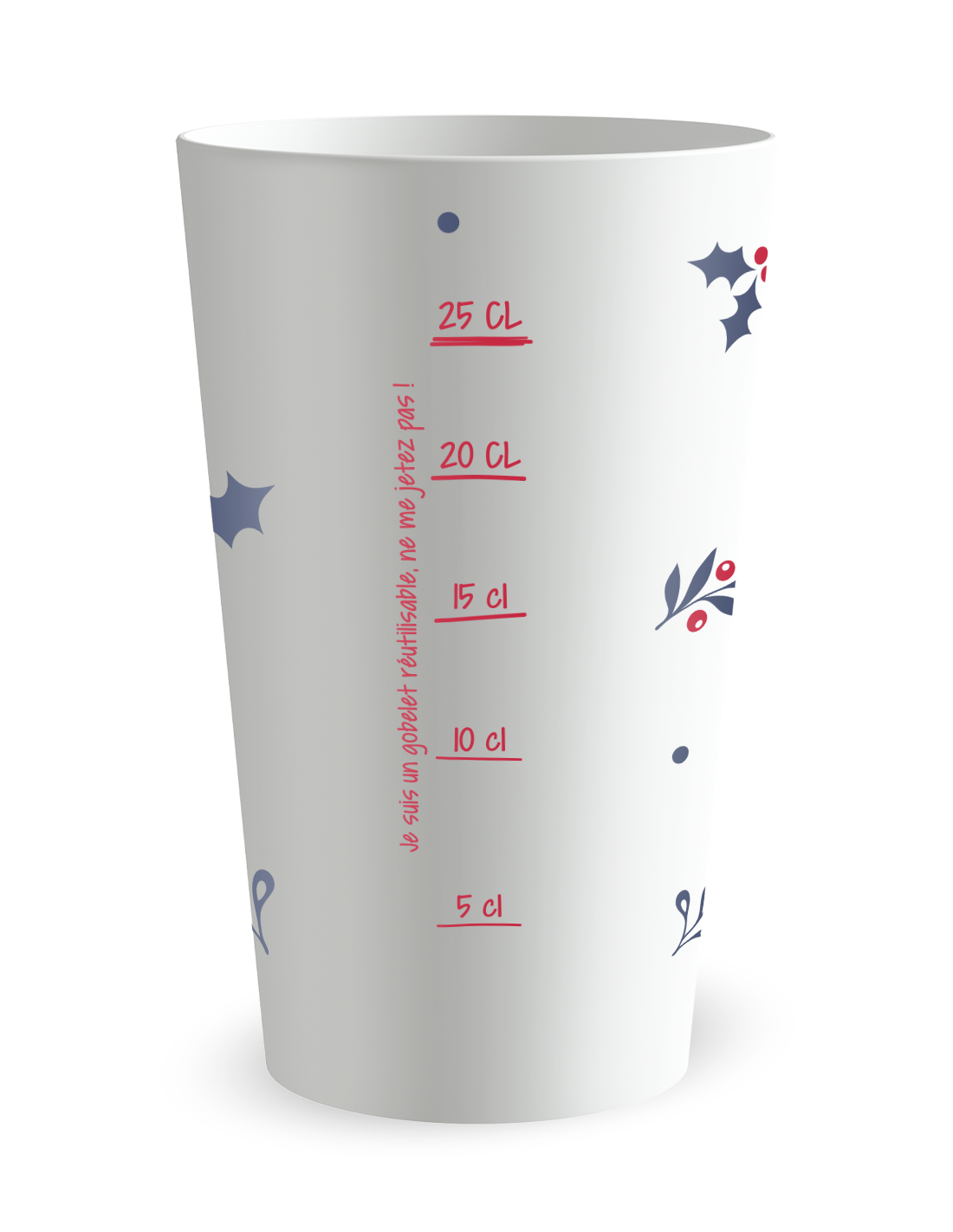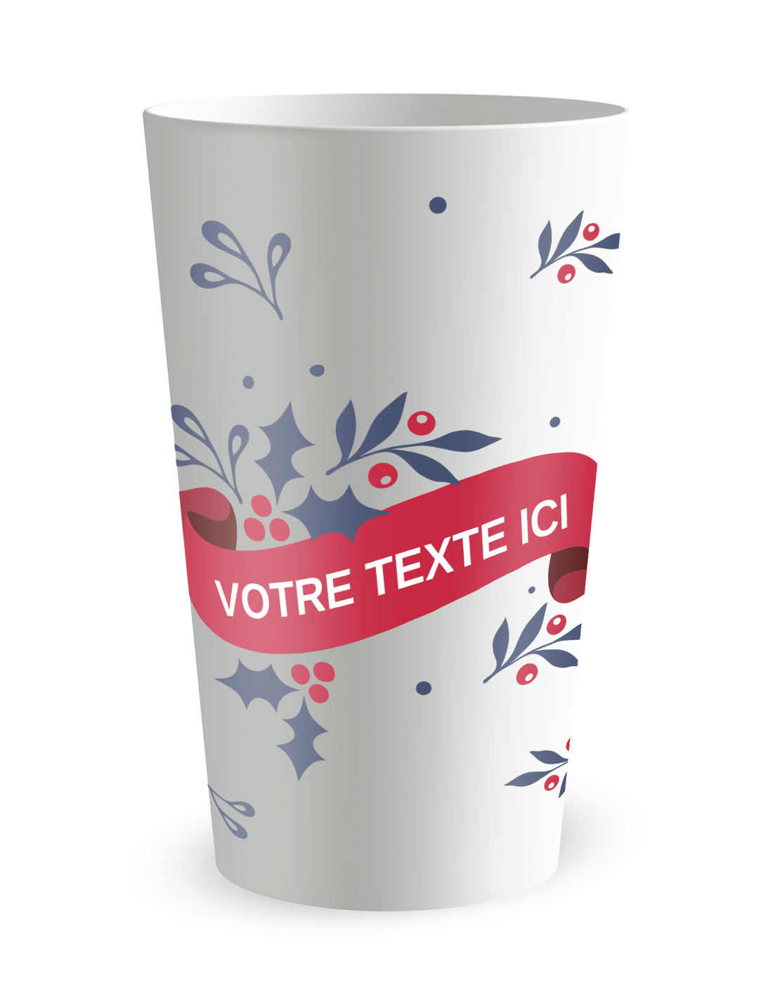 Deze beker "finishing touch" maakt uw eindejaarsdecoratie compleet zonder accessoires te vermeerderen. Eenmaal gepersonaliseerd, wordt hij de rode draad van uw eindejaarsfeest: zelfde vorm, zelfde visual, maar verschillende teksten voor de gasten indien gewenst.