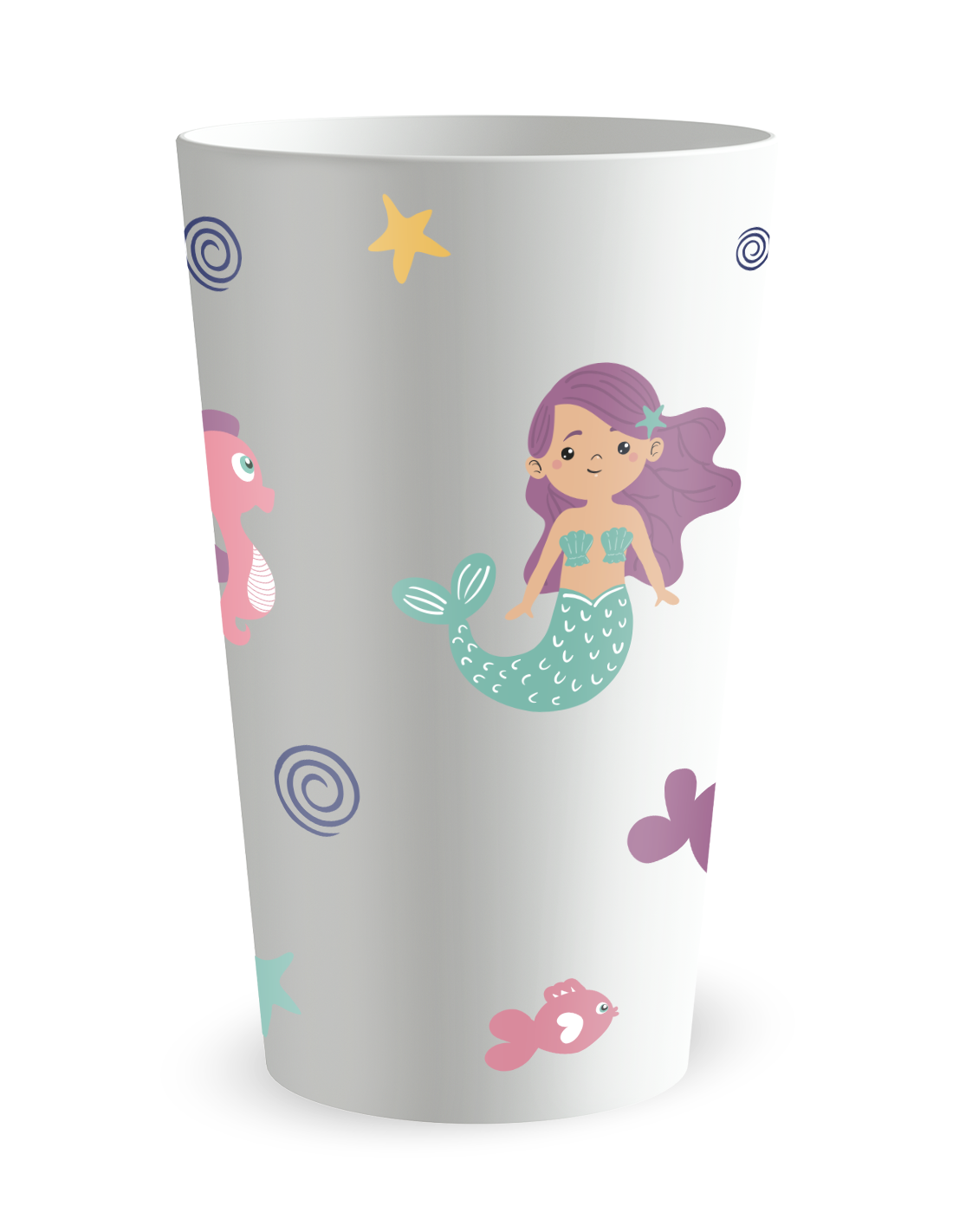 Witte beker, zijaanzicht - Zeemeermin Verjaardag Kinderbeker - Ecocup