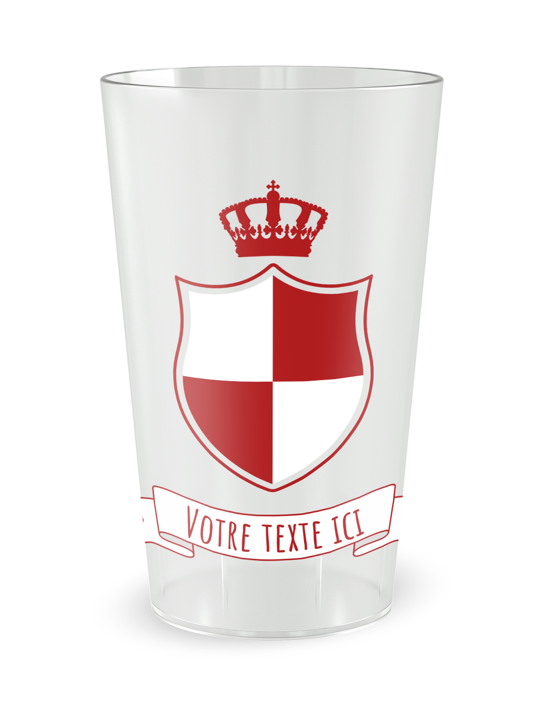 Deze beker met wapenschild + kroon geeft een vleugje "koninklijk" aan uw evenement. Voor een bruiloft, verenigingsavond of gala plaatst u initialen, naam, datum in het wapenschild en past u de kleuren aan. Het resultaat blijft elegant zonder te formeel te zijn en is snel herkenbaar op foto's.
