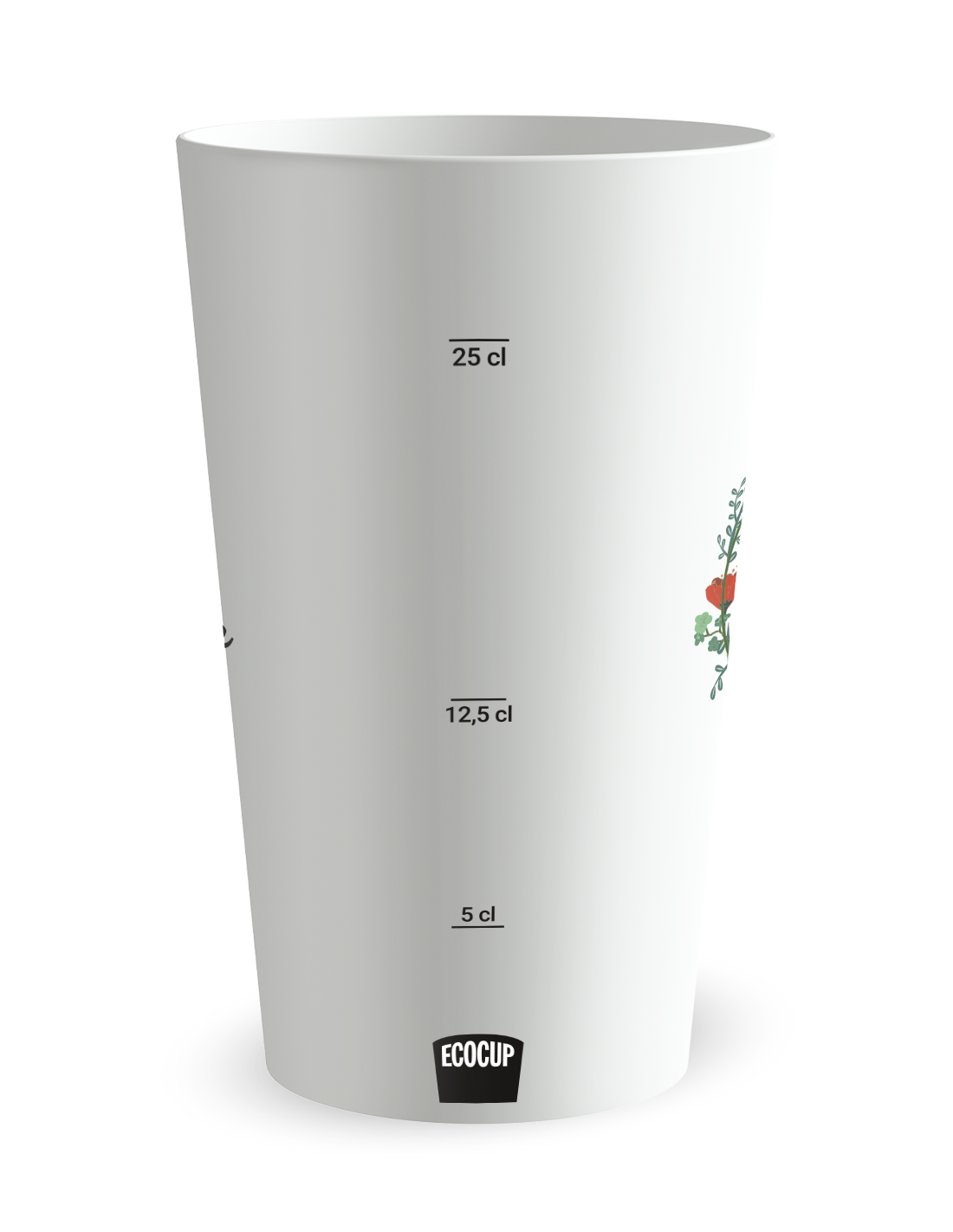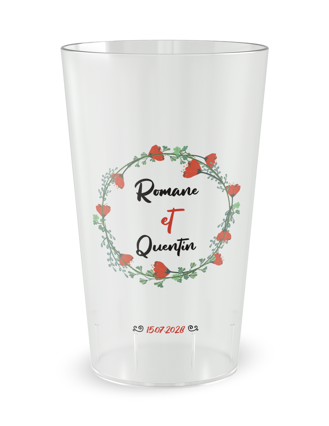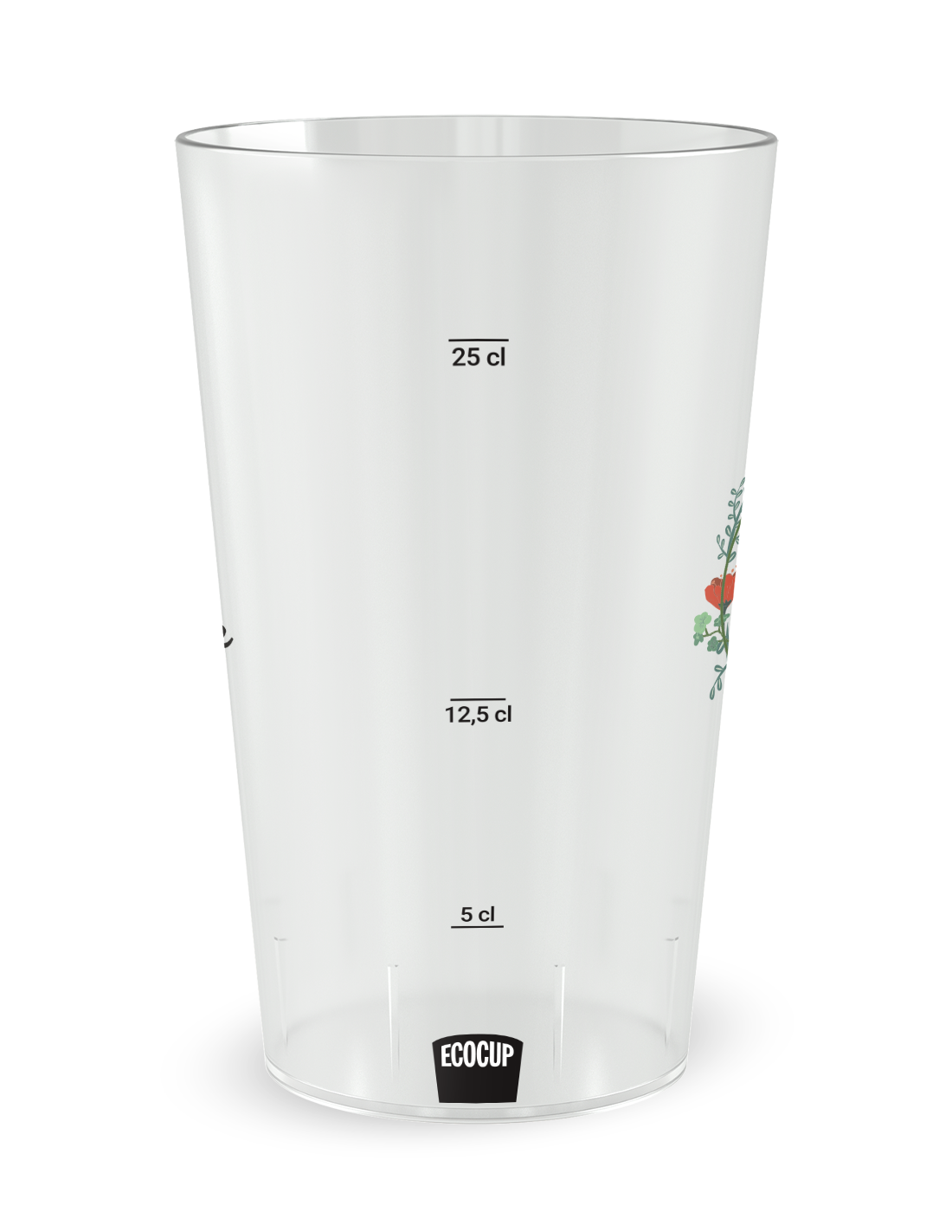 De esthetiek van de gepersonaliseerde trouwbeker klaproos - 25 CL is gebaseerd op een grafische compositie van extreme finesse, geïnspireerd door de kortstondige en wilde schoonheid van bloeiende velden. Dankzij onze uiterst precieze digitale printtechnologie wordt elke rode nuance en elk detail van het hart van de bloem met absolute scherpte weergegeven, letterlijk versmeltend met het materiaal voor een voorbeeldige duurzaamheid door de jaren heen. Dit gepersonaliseerde trouwglas vangt het licht van uw receptiezaal of de reflecties van een openlucht guinguette-ceremonie, waardoor een zowel warme als prestigieuze sfeer ontstaat. De licht matte textuur van het polypropyleen voegt een unieke sensorische dimensie toe, en biedt een zachtheid bij aanraking die de kwaliteitseisen van het merk Ecocup onderstreept. Dit ontwerp in dienst van het evenement trekt alle blikken en wordt direct een gespreksstof, waardoor de eenvoudige handeling van het lessen van de dorst wordt omgevormd tot een moment van esthetische contemplatie dat perfect bij uw thema past.