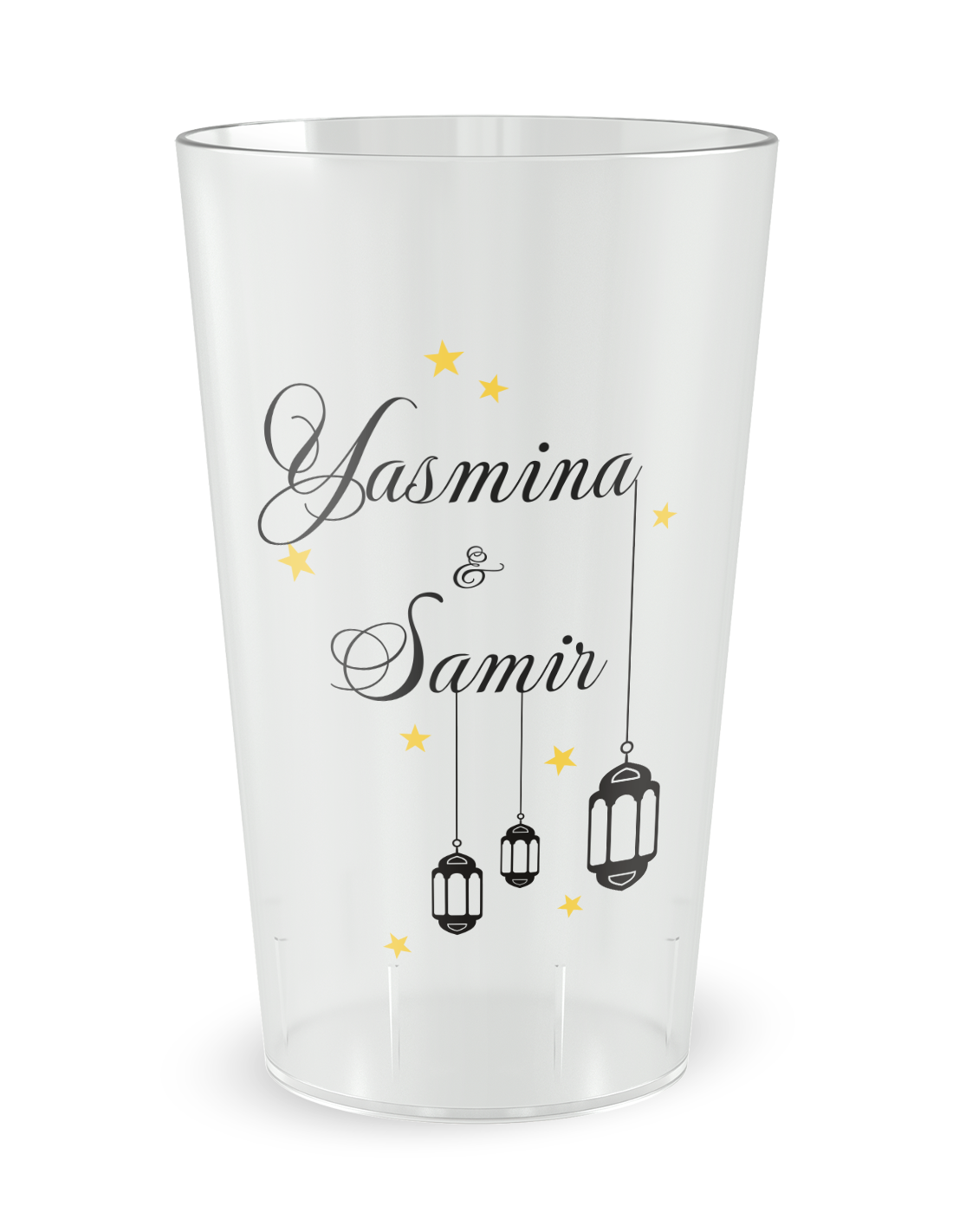 De gepersonaliseerde trouwbeker met de exacte naam Gepersonaliseerde Marokkaanse trouwbeker - 25 CL is een uitnodiging voor een reis en een viering van de zintuigen, ontworpen om uw verbintenis te verfraaien met een ongeëvenaarde oosterse elegantie. Dit iconische object dient niet alleen voor uw verfrissingen; het vangt de essentie van een rijk esthetisch erfgoed om het over te brengen naar het hart van uw evenement. Door deze verantwoorde beker te kiezen, biedt u uw gasten een meeslepende ervaring waarbij elk detail, van de fijnheid van de geometrische motieven tot de zijdeachtige textuur van het matte plastic, bijdraagt aan de harmonie van uw receptie. Of het nu is voor een moment van samenzijn rond een traditionele muntthee of om uw gasten te verfrissen tijdens een sterrenavond, dit model wordt het natuurlijke verlengstuk van uw tafeldecoratie, door de bruikbaarheid van een onbreekbaar accessoire te combineren met de kracht van een memorabele herinnering. Door te kiezen voor dit intelligente alternatief, verfraait u het huidige moment terwijl de organisatie aanzienlijk wordt vereenvoudigd, wat zorgt voor een vlotte en elegante service.