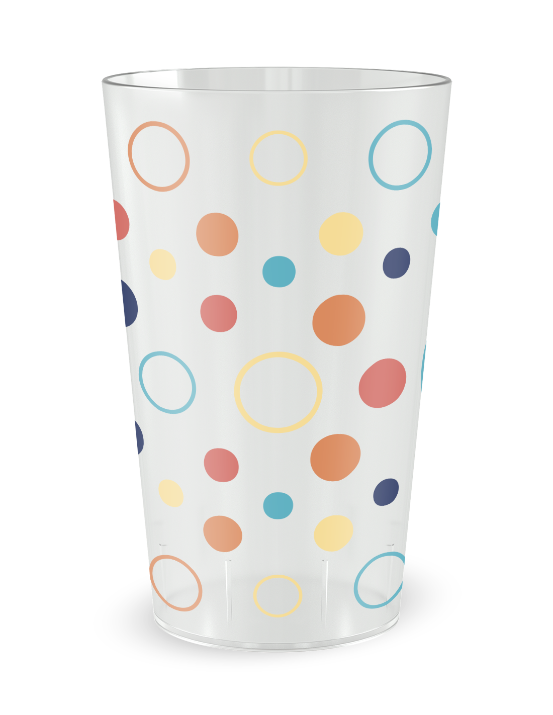 Het ontwerp van de Gepersonaliseerde Verjaardagsbeker Kleurrijke Rondjes - 25 CL onderscheidt zich door zijn evenwichtige grafische compositie, die cirkels van verschillende groottes combineert die lijken te dansen op het matte oppervlak van het glas. Dit dynamische motief wordt versterkt door een opdruk op plastic beker in hoge definitie, wat diepe kleuren en een onberispelijke lijnenscherpte garandeert. De subtiele transparantie van het materiaal speelt met het omgevingslicht, benadrukt de glans van elke gekleurde pastille en accentueert tegelijkertijd de kleur van uw dranken. Dit glas is niet alleen functioneel; het wordt een echt decoratiestuk dat uw tafels tot leven brengt, en een vleugje kleurrijke distinctie en vrolijkheid toevoegt aan uw verjaardag, of deze nu binnen of buiten wordt gevierd.