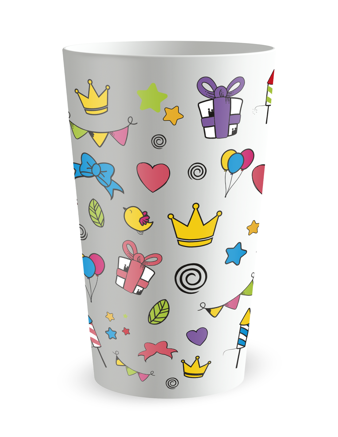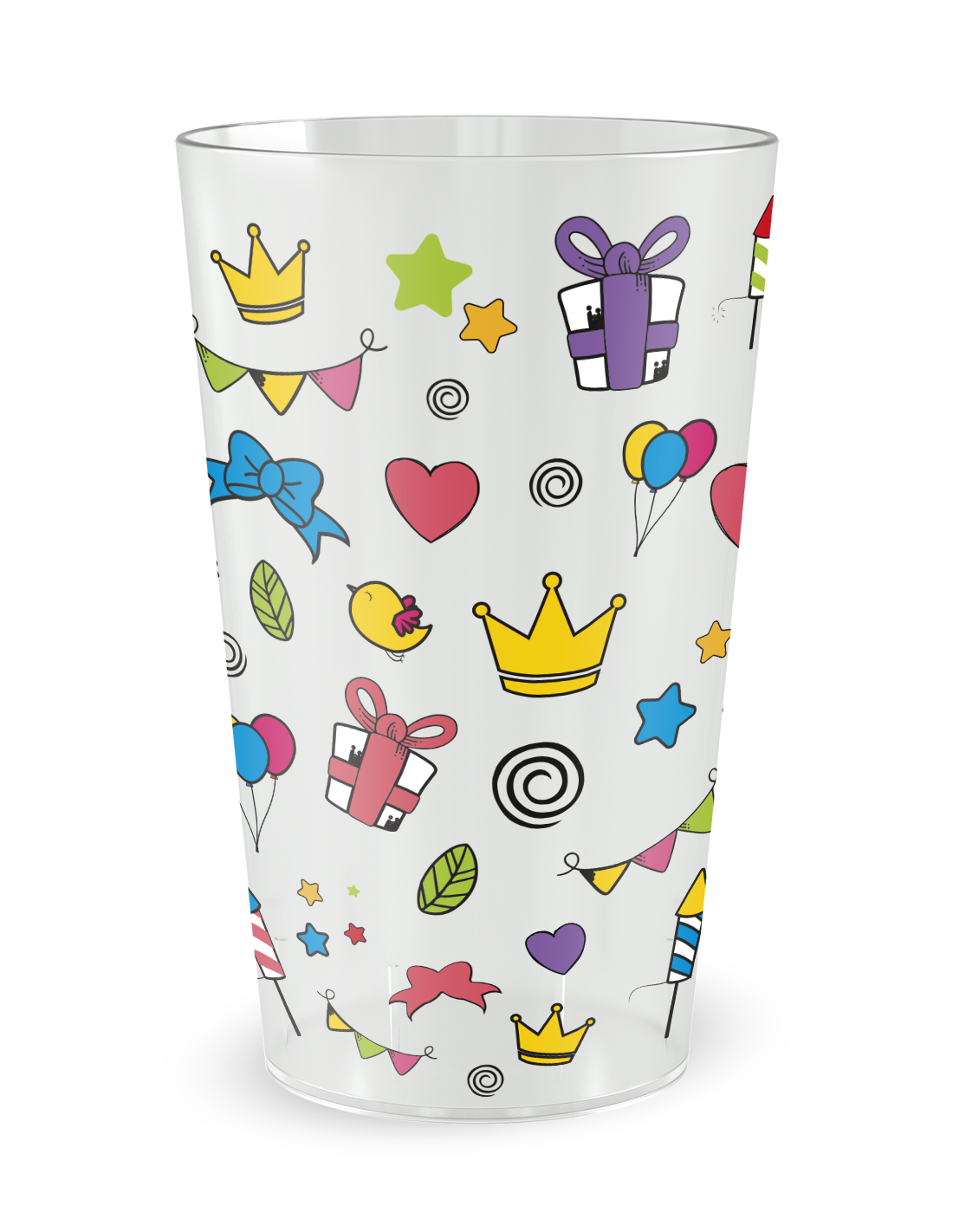 Transparante beker aan de voorkant - Kleurrijke Verjaardags - Ecocup