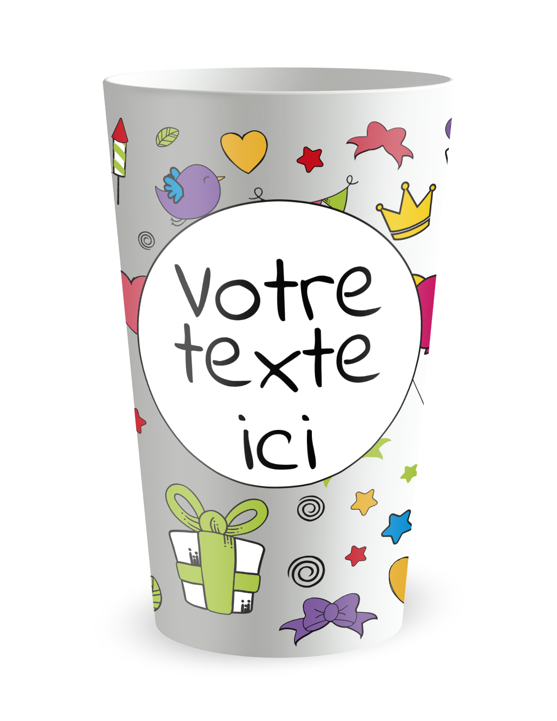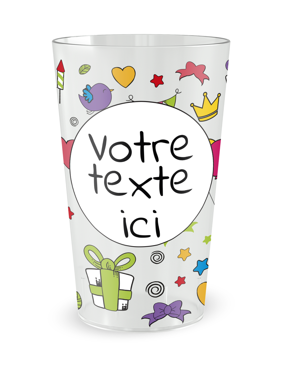 Het unieke ontwerp van dit model is gebaseerd op een gedurfde esthetiek die spontaniteit viert. De motieven van kleurrijke tekeningen roepen artistieke vrijheid en de vrolijkheid op die eigen is aan feestelijke momenten. Elke lijn, elke nuance is bedacht om een harmonieus visueel evenwicht te creëren dat zowel past bij een levendig kinderfeestje als bij een avond onder volwassenen die een deel van hun zorgeloosheid willen terugvinden. Dit gepersonaliseerde verjaardagsglas onderscheidt zich door de fijnheid van zijn digitale afdruk, waarbij de pigmenten lijken te versmelten met het materiaal voor een levendig resultaat. De kleurverzadiging is geoptimaliseerd om stralend te blijven, zelfs onder de gedempte lichten van een dansvloer of de schittering van de zon tijdens een buitensnack. Het is een echt modeaccessoire voor uw evenement, in staat om elke drank te verfraaien, van ambachtelijk vruchtensap tot de meest verfijnde cocktail.