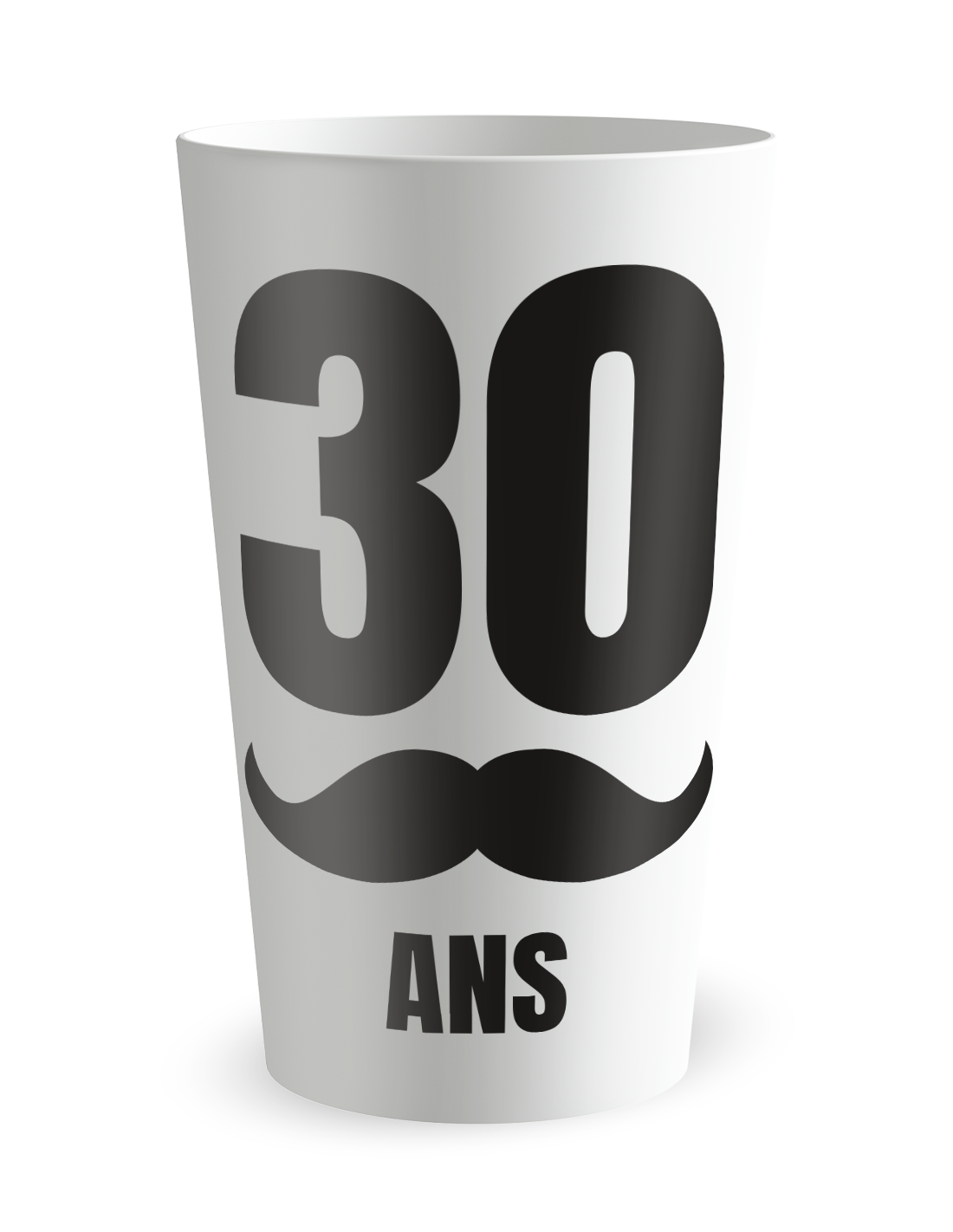 Om een optie met een grotere inhoud te bieden met behoud van dezelfde feestelijke sfeer en het iconische snorrenontwerp, ontdek onze Gepersonaliseerde verjaardagsbeker volwassen snor 30 cl.
